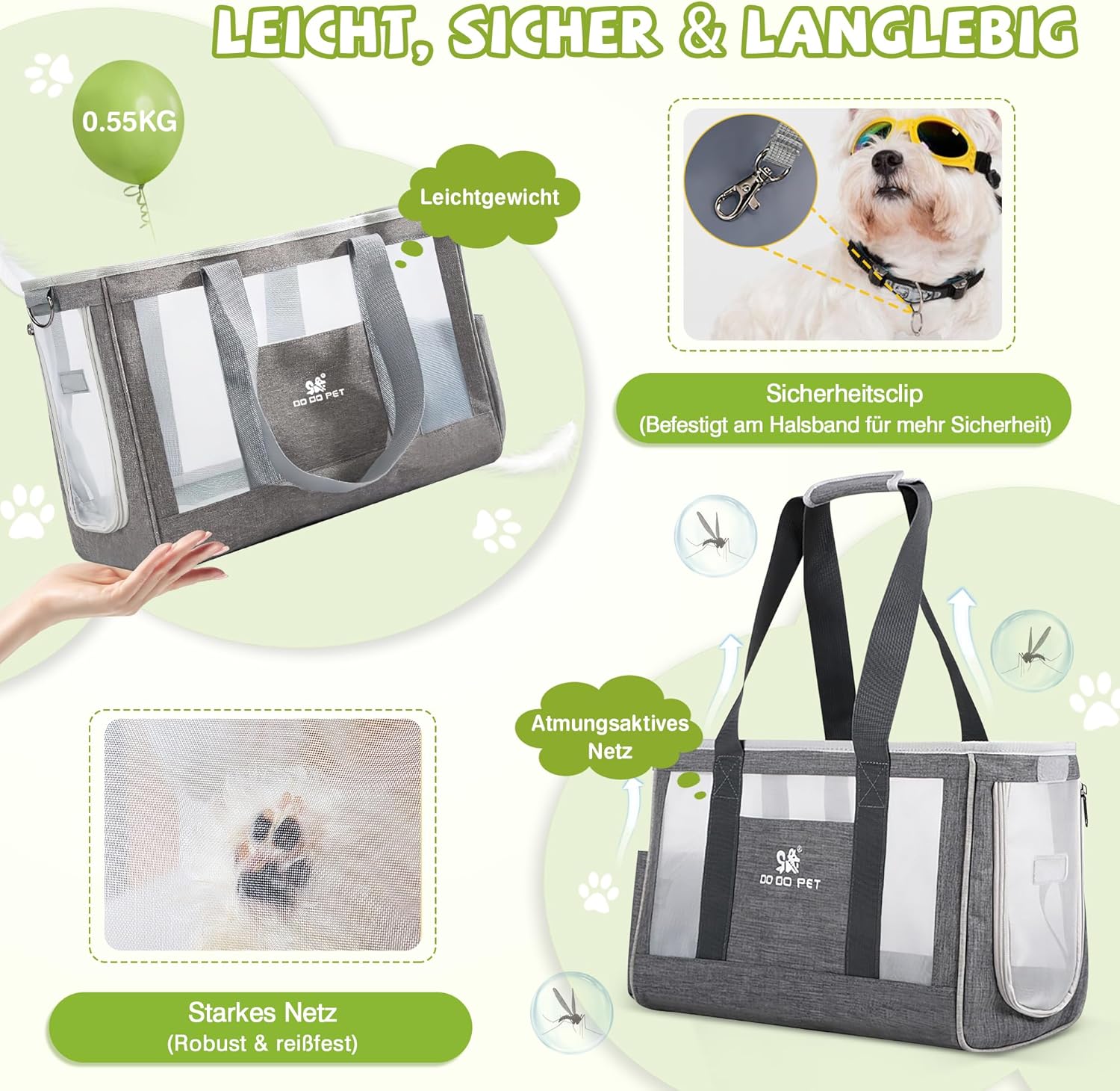 - Verbesserte Sicherheitsfunktionen: Die Sicherheit Ihres pelzigen Freundes steht für uns an erster Stelle. Deshalb ist unsere Welpentasche mit einem integrierten Sicherheitshaken ausgestattet, der sich sicher am Halsband Ihres Haustiers befestigen lässt