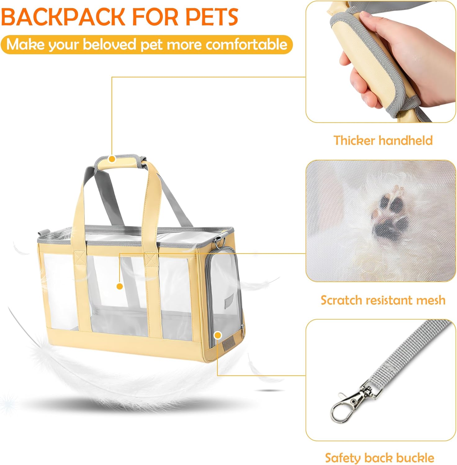 - Sicherheit: Der eingebaute Sicherheitshaken lässt sich sicher am Halsband Ihres Haustiers befestigen, sodass es nicht herausspringen kann und seine Sicherheit während der gesamten Reise gewährleistet ist. Im Gegensatz zu Taschen mit