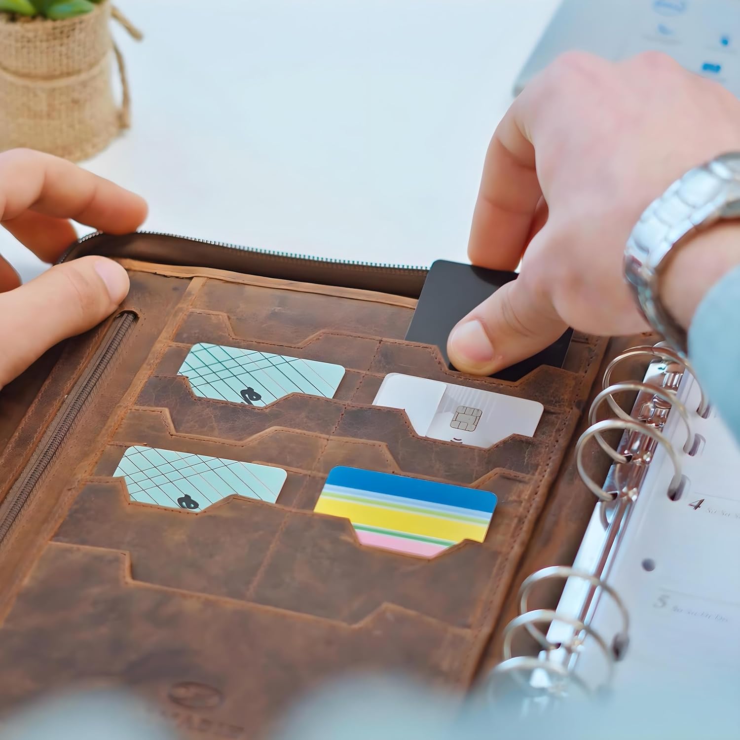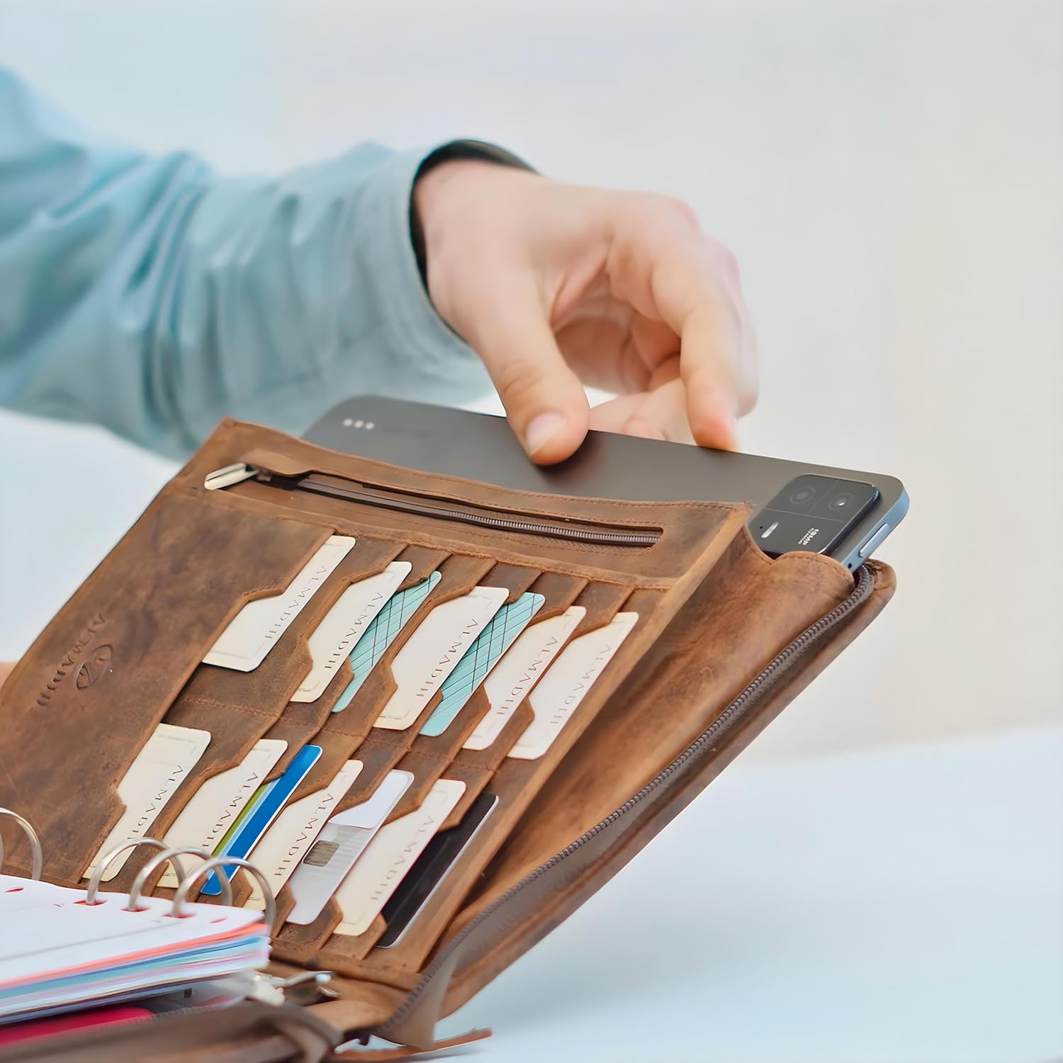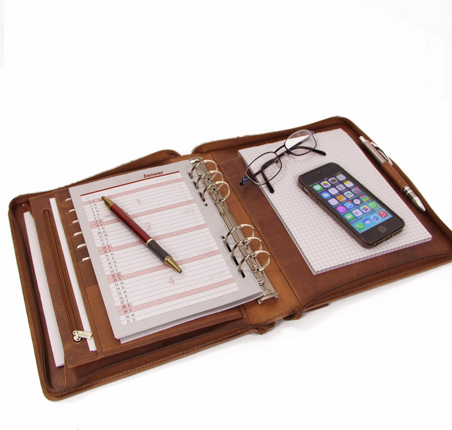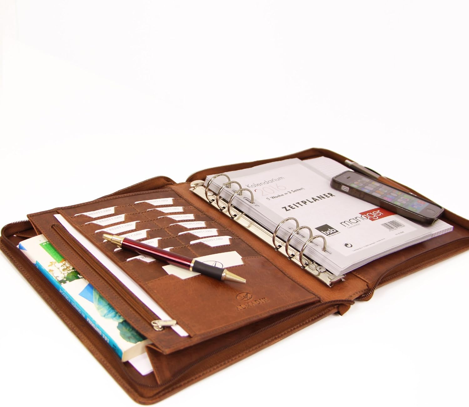 ALMADIH - Leder A5 Organizer mit Ringmechanik Reissverschluss, Kalender 2024 Schreibblock Premium Ri