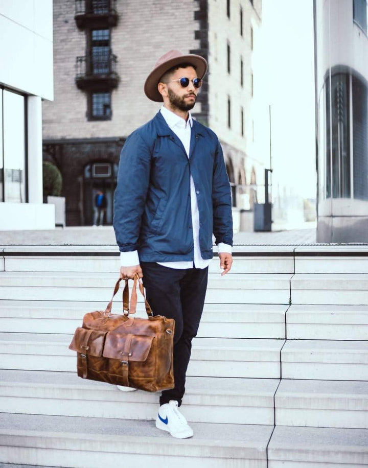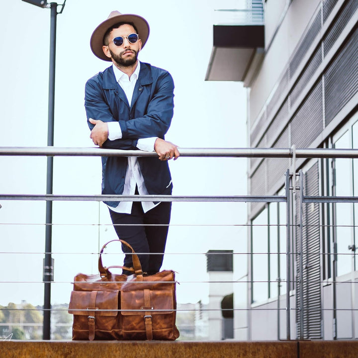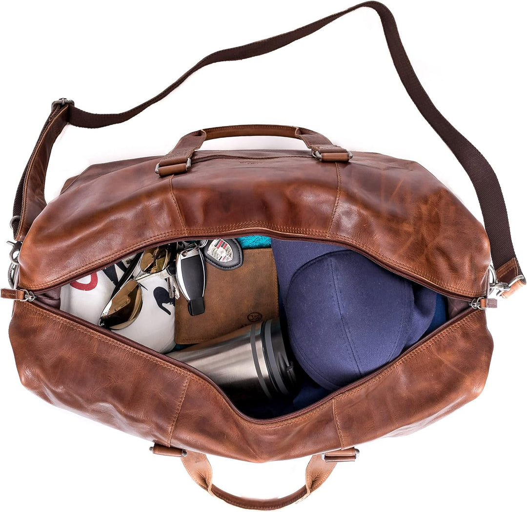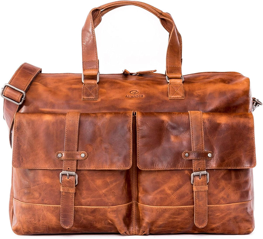 - ALMADIH Reisetasche KANE aus Premium Rindsleder / Farbe: Braun Havanna/ 100% Handarbei