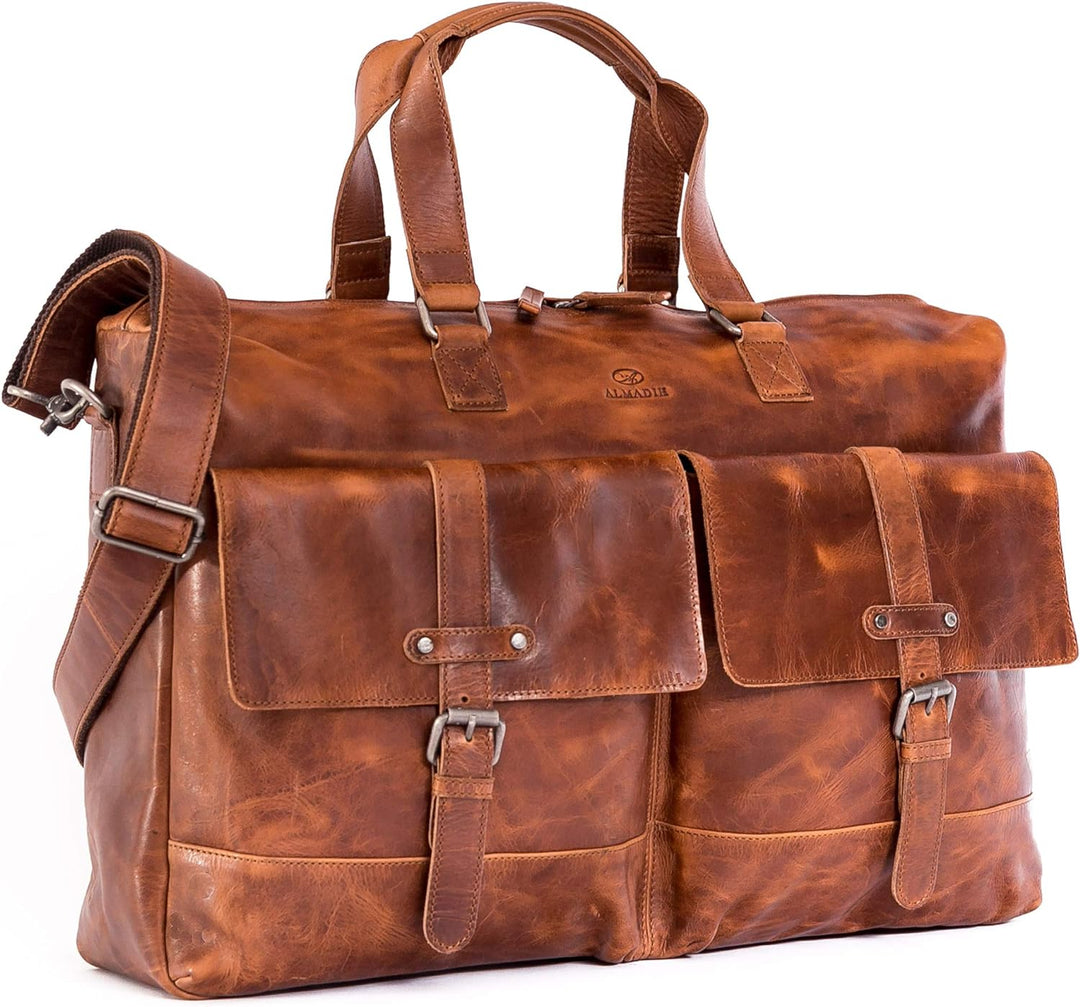 - Die ALMADIH echt Leder Unisextasche Herrentasche wurde aus hochwertigem Rindsleder gefertigt und glänzt durch ein tolles und aussergewöhnliches Design. Sie kann auch als Business Tasche getragen werden oder als Aktentasche, Arbeitstasche,