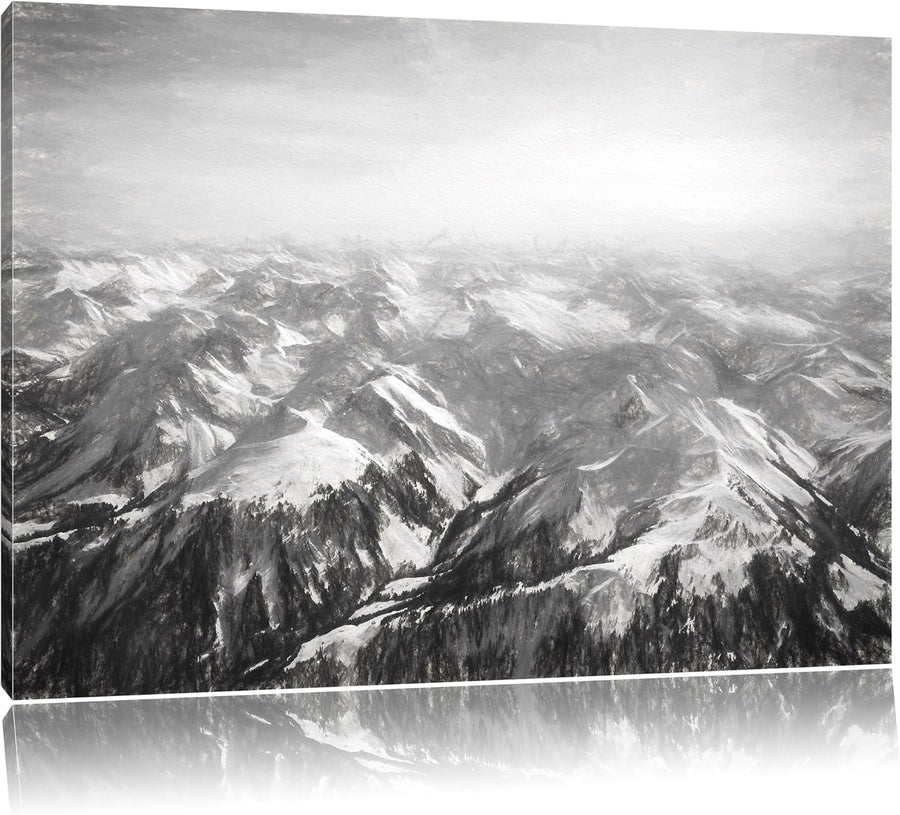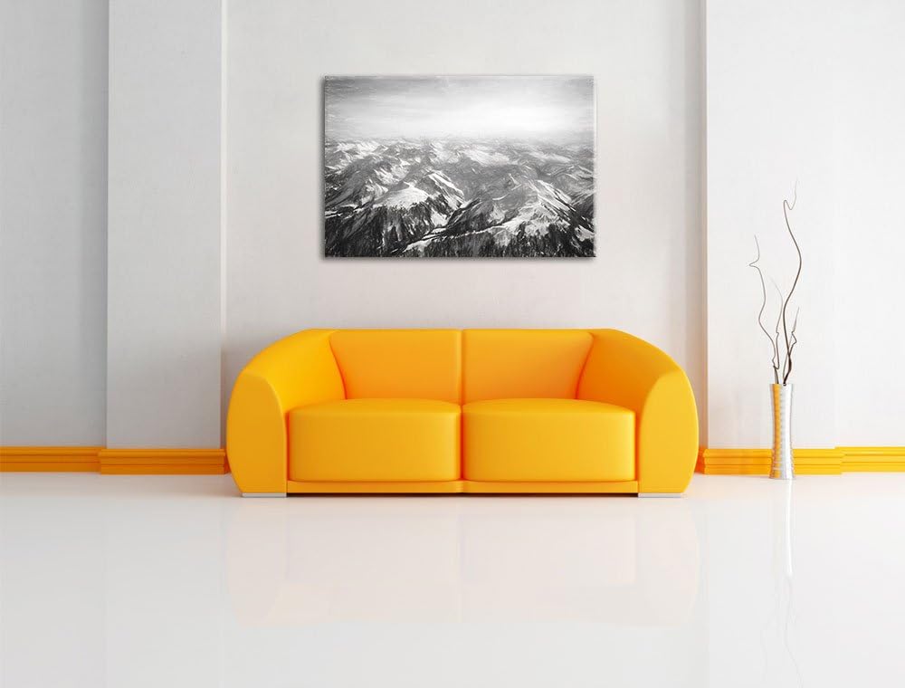 Alpen Kohle Effekt, Format: 100x70 auf Leinwand, XXL riesige Bilder fertig gerahmt mit Keilrahmen, K