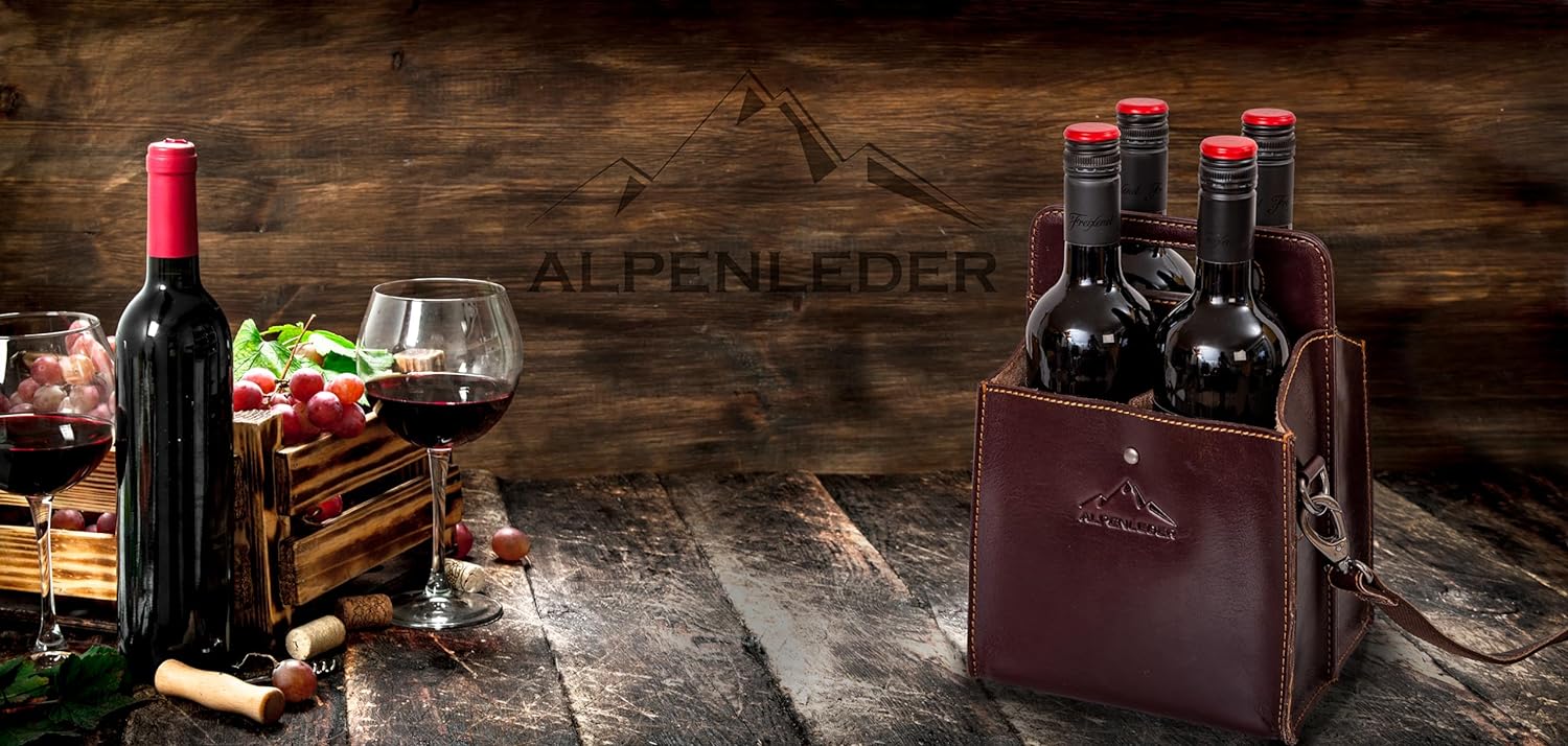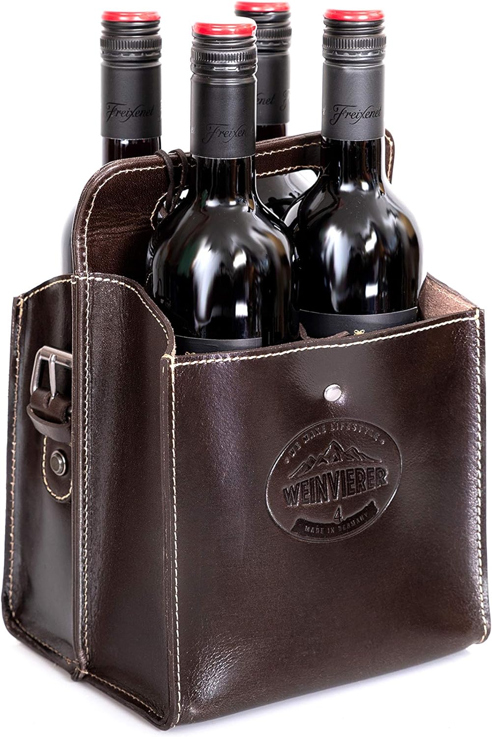 - STYLISCH UND PRAKTISCH - Unser unvergleichlich schöner Weinvierer in zeitlosem Design, besteht aus 100% vegetabilem Büffelleder, kommt mit einem individuell verstellbaren Vollleder Umhängegurt und bietet Platz für 4 Weinflaschen!
