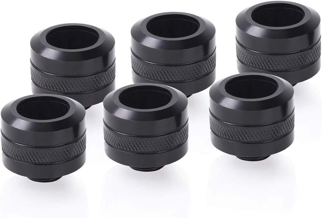 - Technische Details: Material: Messing Farbe: Deep Black Durchmesser: 26 mm Höhe: 23 mm Gewinde: G1/4" Gewindelänge: 5 mm HardTube Grösse: 16 mm Kompatibilität: PETG-, Acryl-, Messing- und Glasrohre Gewicht: 0,042 kg Lieferumfang: 1x Alphacool Eiszapfen PRO 16mm HardTube Fitting G1/4 - Deep Black Sixpack