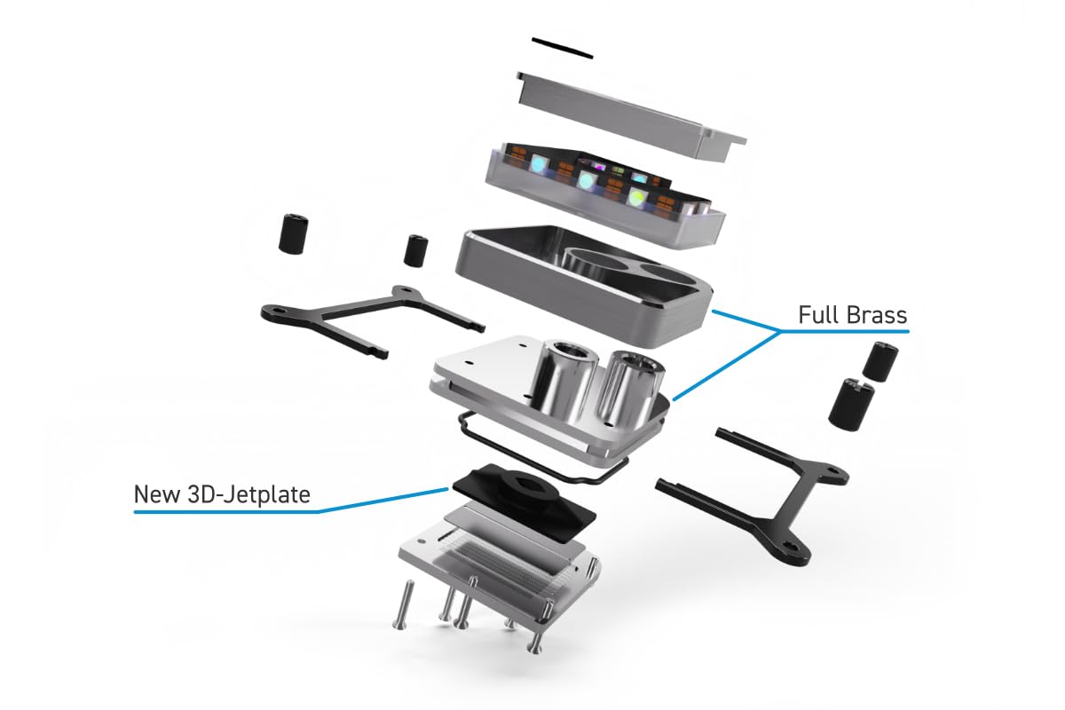 - Das Beste aus Alt und Neu: Alphacool bringt mit dem Core 1 das Beste beider Welten zusammen. Neben der neuen 3D-Jetplate kehrt Alphacool zu seinen Wurzeln zurück, indem die Kühlflüssigkeit durch eine bewährte Kreuzschlitztechnik gleichmässig auf dem