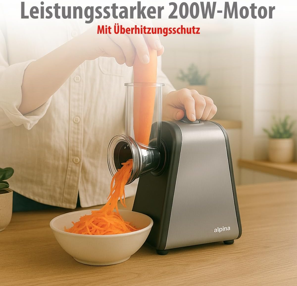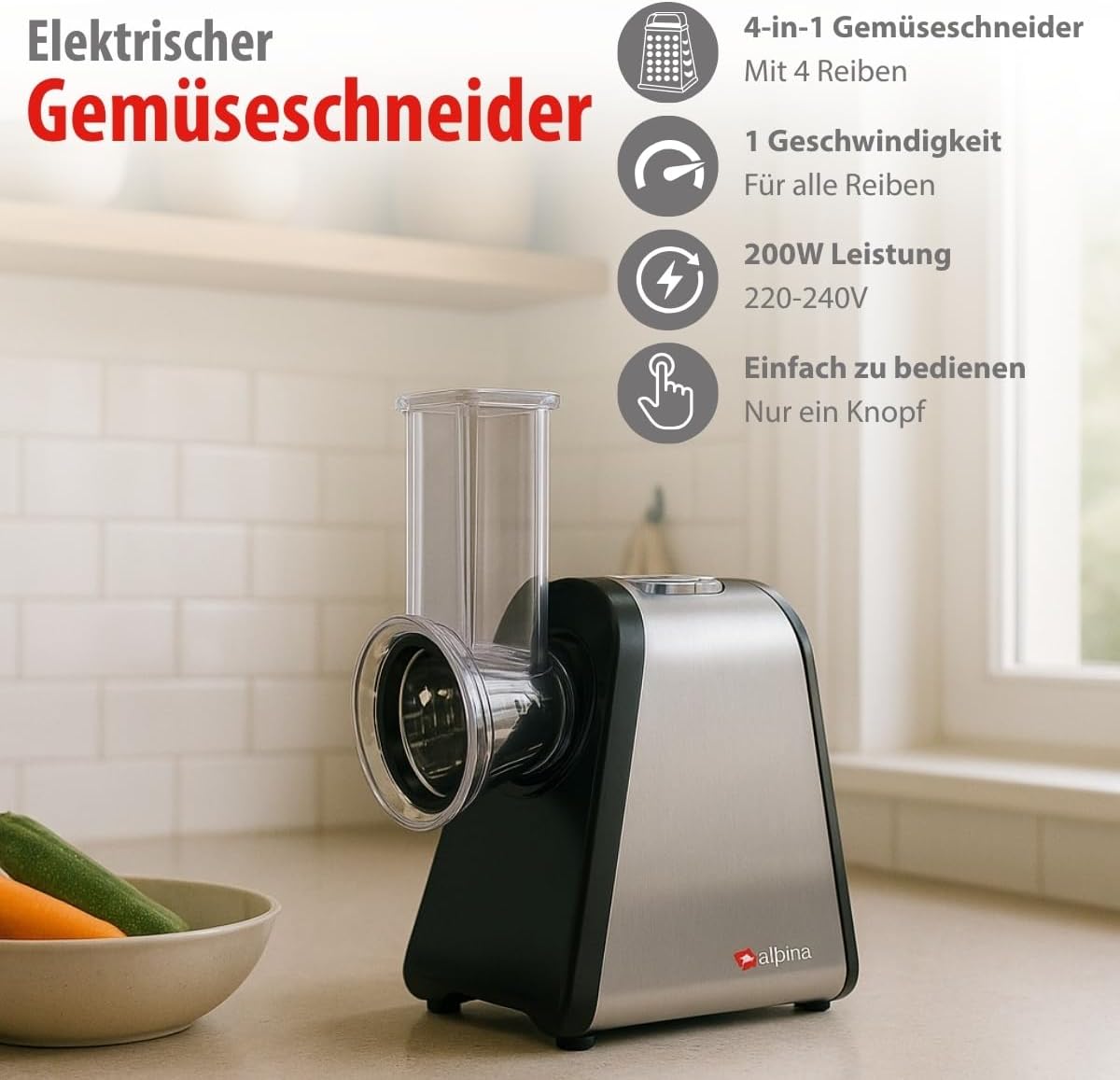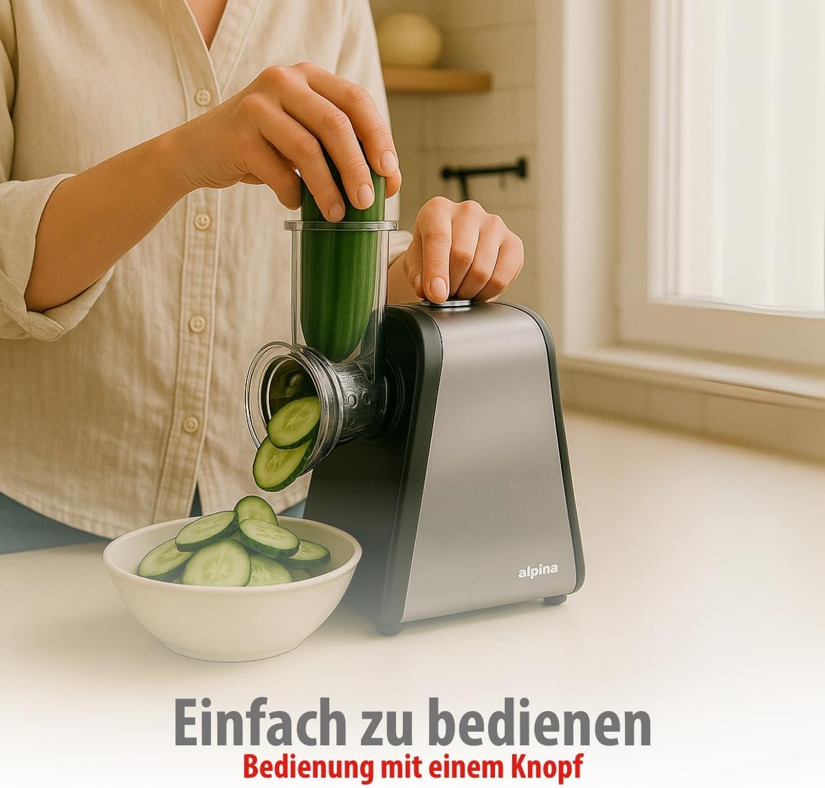 - MULTIFUNKTIONALER GEMÜSESCHNEIDER - Sparen Sie Zeit und Mühe mit diesem 4-in-1 elektrischen Gemüseschneider von alpina. Sie zauberen im Handumdrehen eine gesunde Mahlzeit mit Hilfe dieser Gemüsehobel.