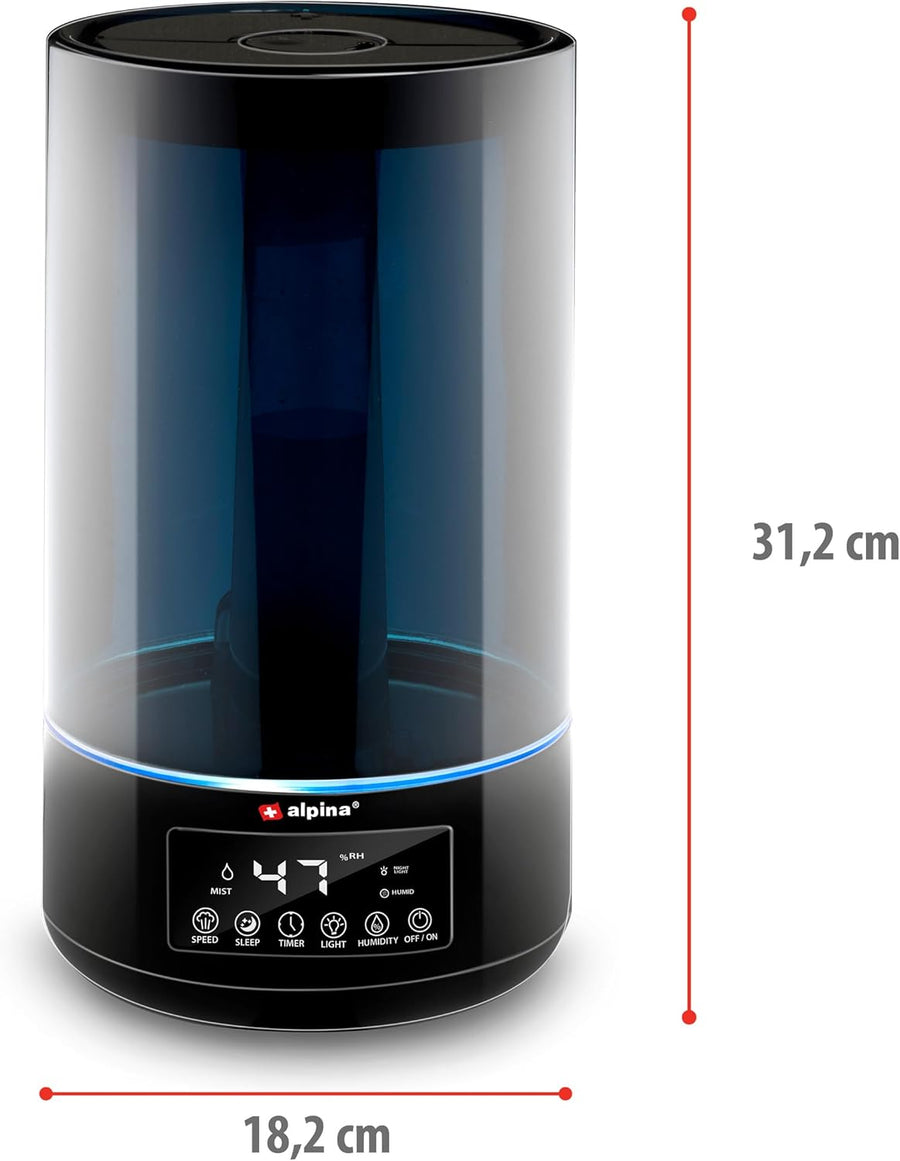 • DIFFUSER FEUCHTIGKEIT - Mit dem Alpina Luftbefeuchter bestimmen Sie die Luftfeuchtigkeit in Ihrem Zuhause. Der Befeuchter ist in 5 Stufen von 45% bis 90% einstellbar.