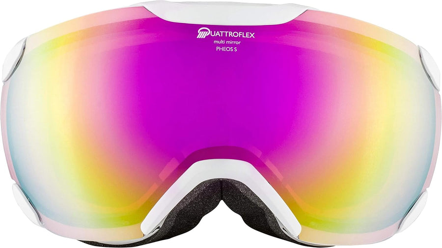 - Rutschfester Sitz der Brille auf dem Skihelm durch eine Gummierung auf der Innenseite des Brillenbandes