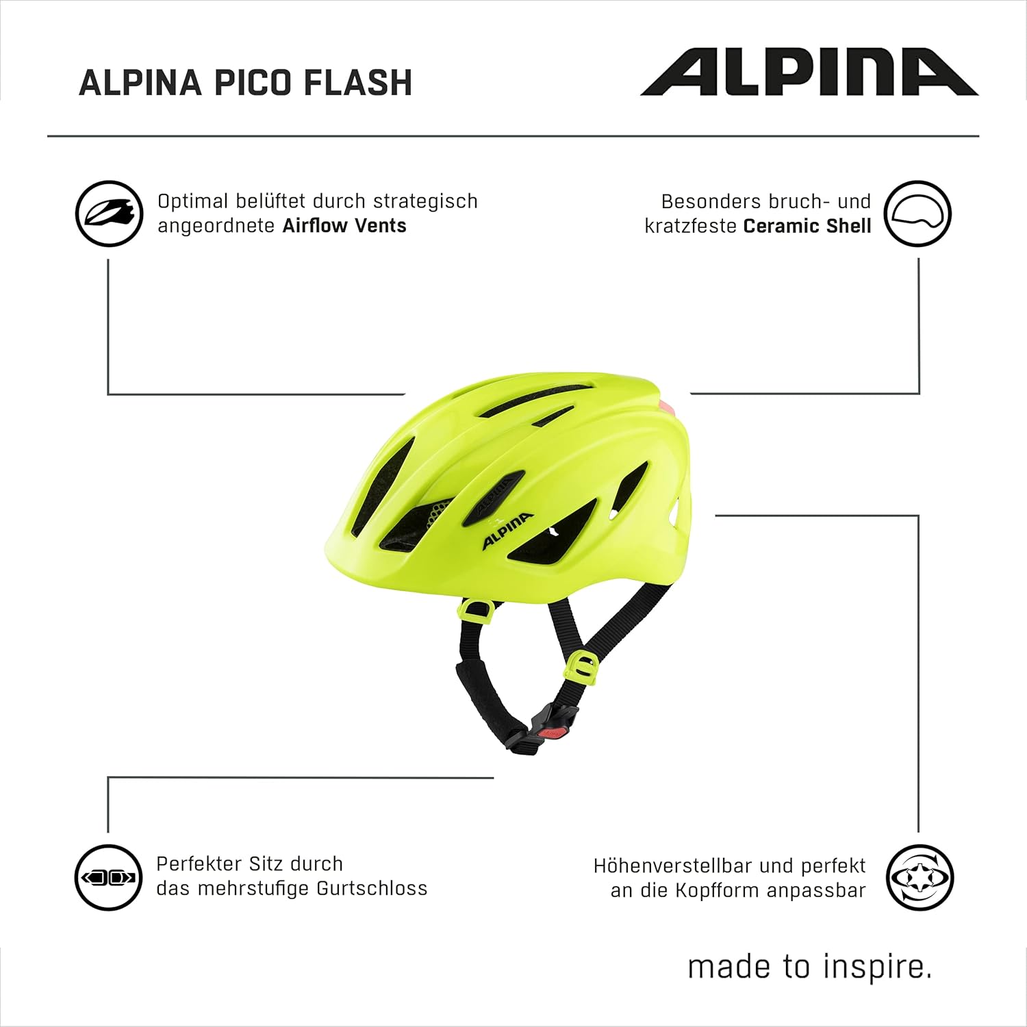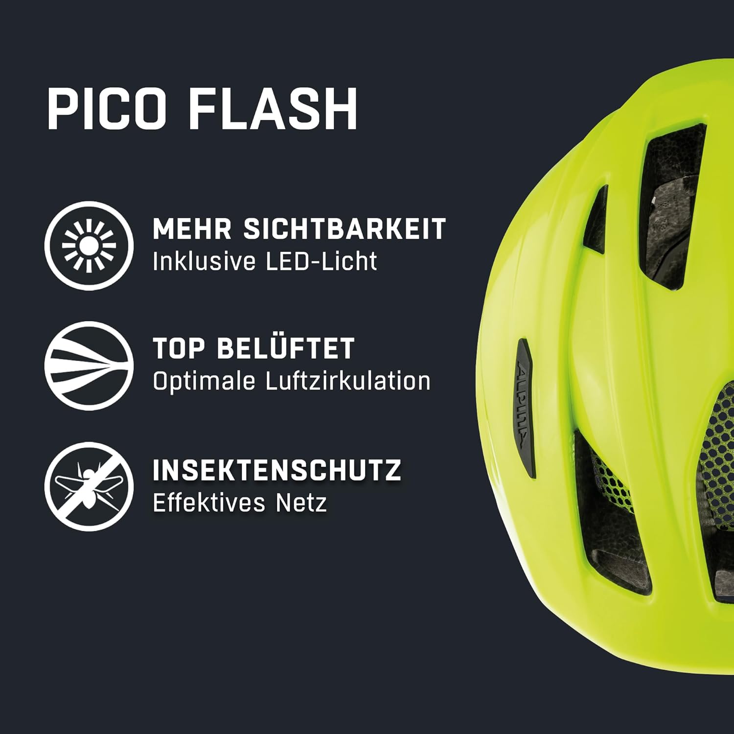 ALPINA PICO FLASH - Beleuchteter, Leichter & Bruchfester Fahrradhelm Mit Fliegennetz Für Kinder be v