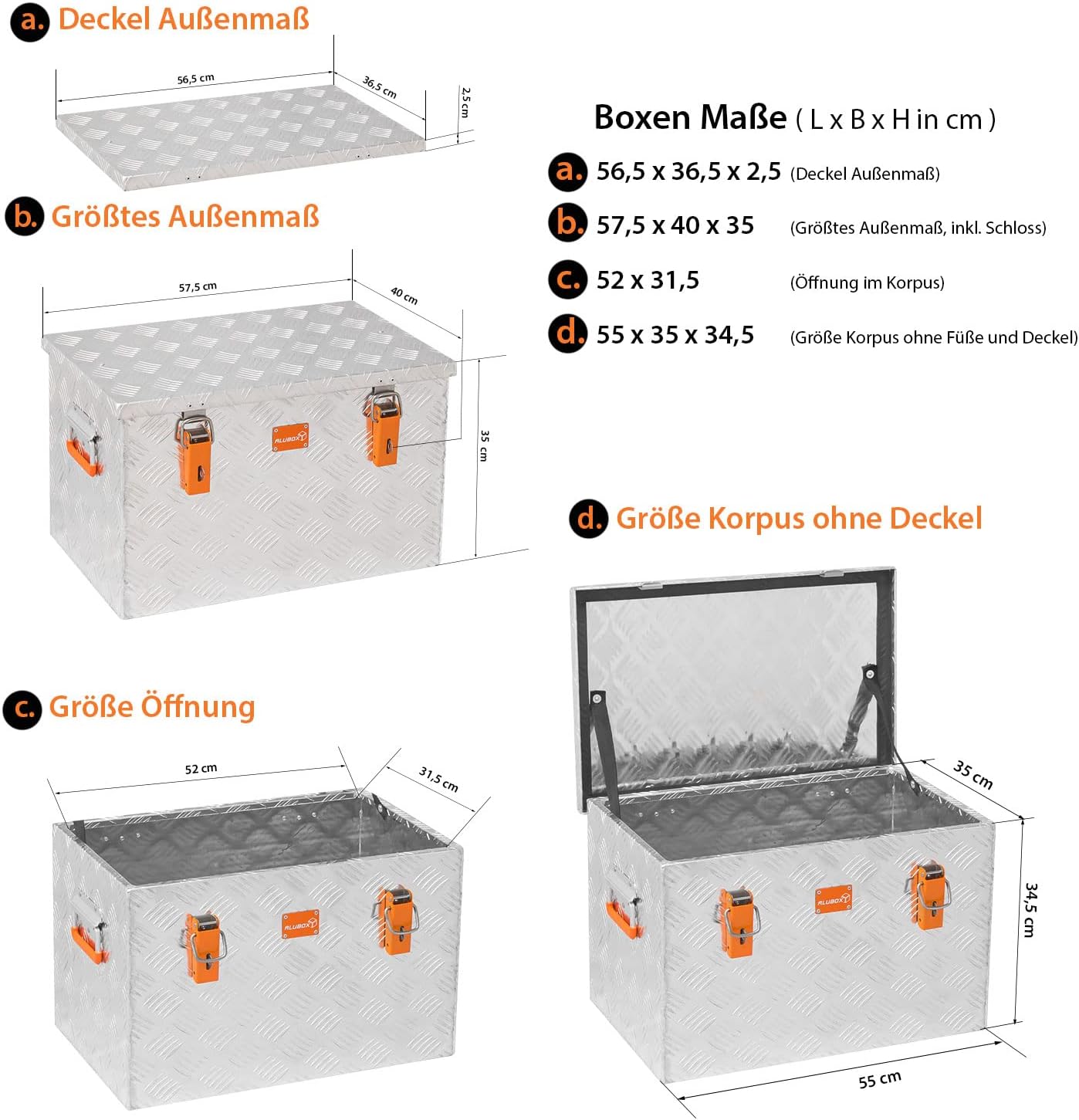 - Griffe aus Aluminium, Schlösser und Scharniere aus Edelstahl