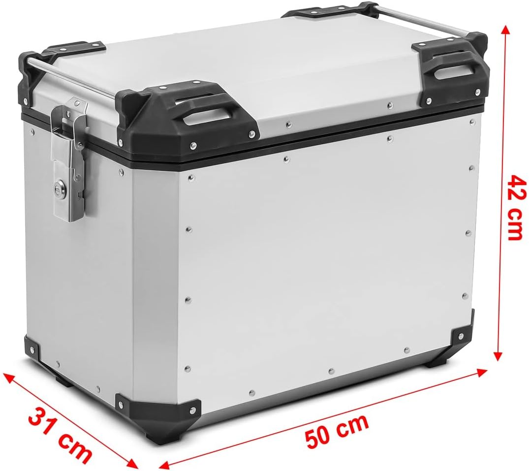 • Bagtecs QP48 Motorrad Aluminium Koffer-Set mit 2x Alu Seitenkoffer 48 Liter Volumen für rechte und linke Seite. Seitenkoffer für perfekten Gepäcktransport und echte Adventure-Optik. Masse Koffer: Breite 50cm, Höhe 42cm, Tiefe 31cm, Volumen 48 Liter