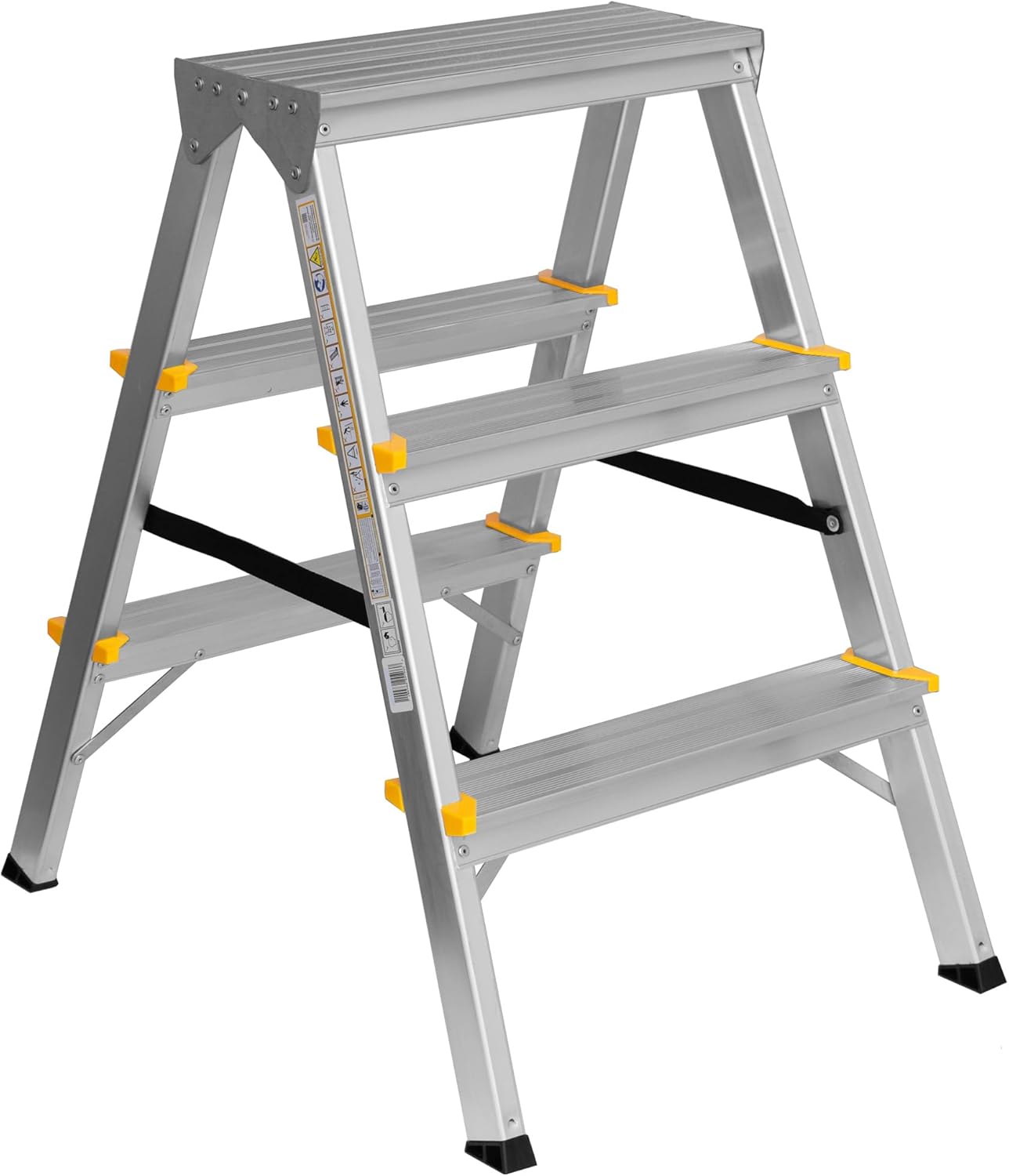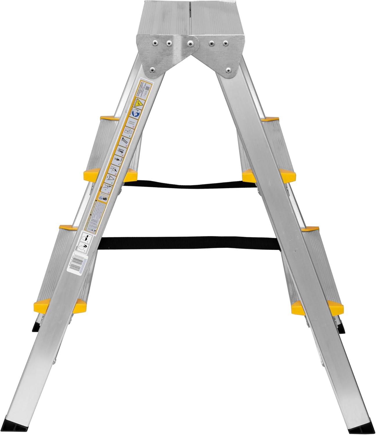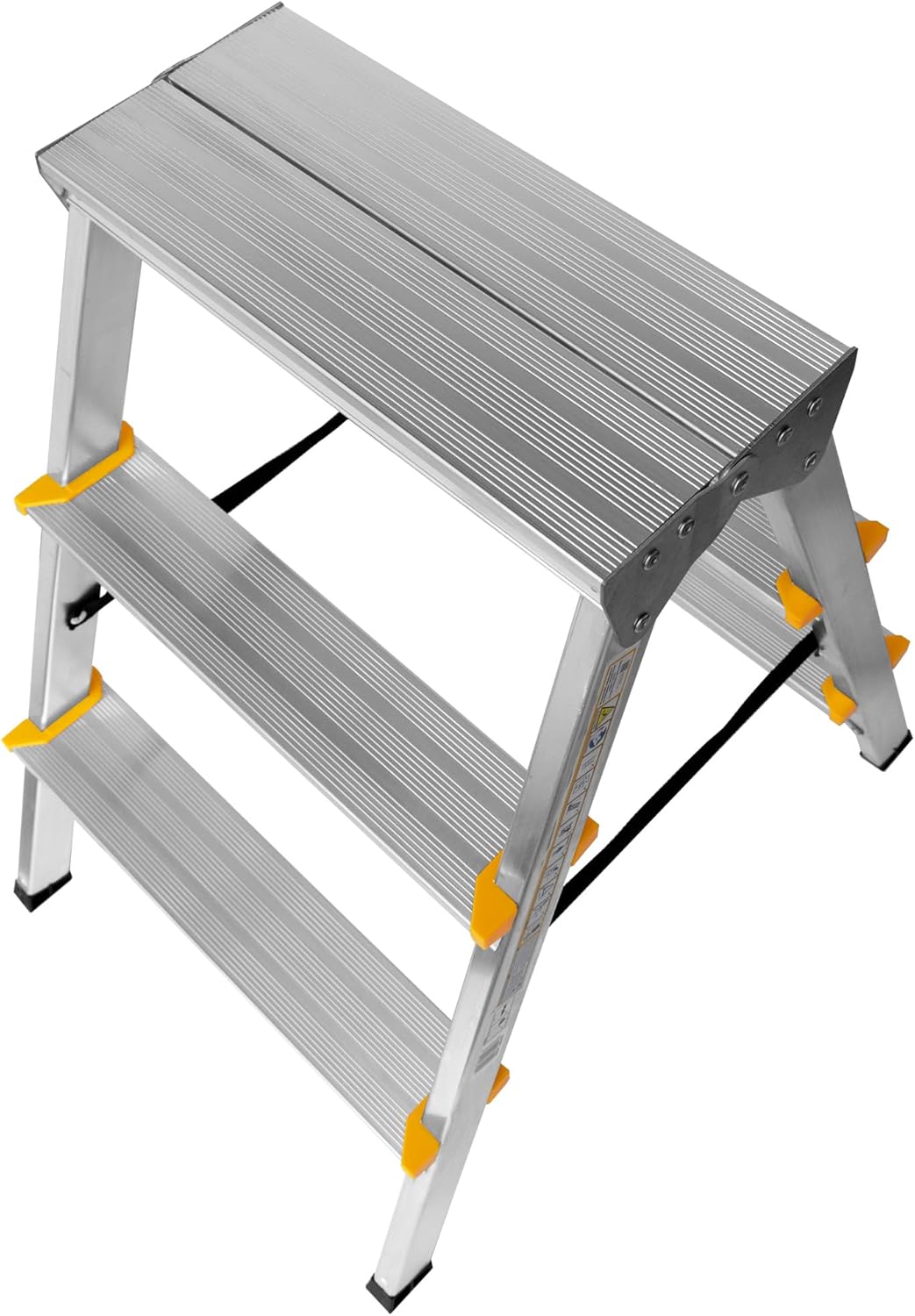 - Technische Daten – 3 Stufen - beidseitig begehbar – klappbar - Höhe der zusammengeklappten Leiter 63 cm - Leiterbreite 41 cm - Plattformhöhe 59 cm - Arbeitshöhe 259 cm - Eigengewicht 2,4 kg - maximale Belastung 150 kg