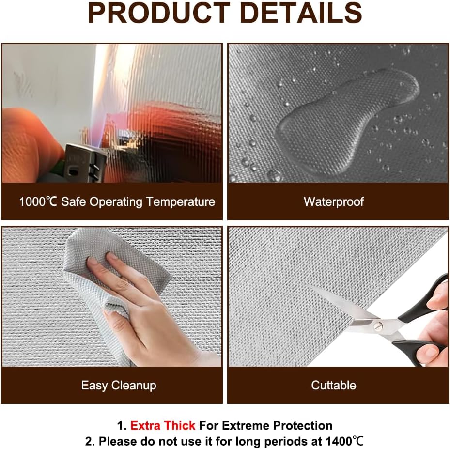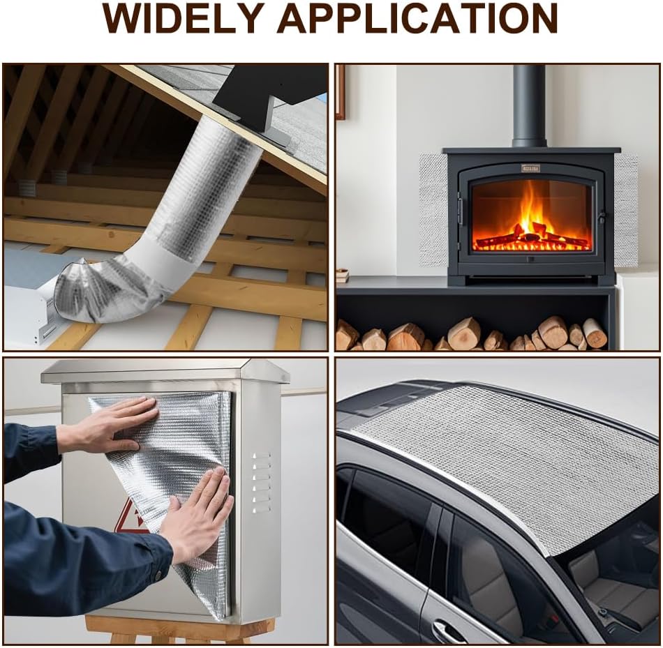 - 【VIELFÄLTIGE EINSATZMÖGLICHKEITEN】: Aluminisierte Hitzeschutzmatte eignen sich für eine Vielzahl von Anwendungen wie Kabel, Kunststoffteile, lackierte Oberflächen, Schläuche, Autotüren, Motorhauben, Kamine, Kühlschränke, Öfen und mehr.