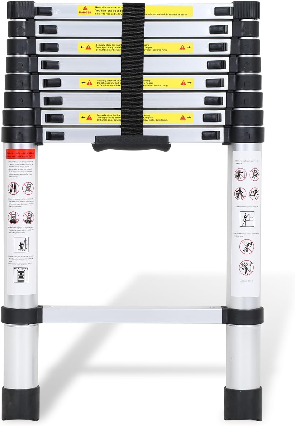 - 🧗Sicher und Zuverlässig: Zwischen den Sprossen ist Finger Sicherheitseinstellungen vorhanden, um das Einklemmen der Finger beim Ein- und Ausfahren zu verhindern. Eine gummierte rutschfeste Stufe und ein stossdämpfender Riemen zwischen den Sprossen