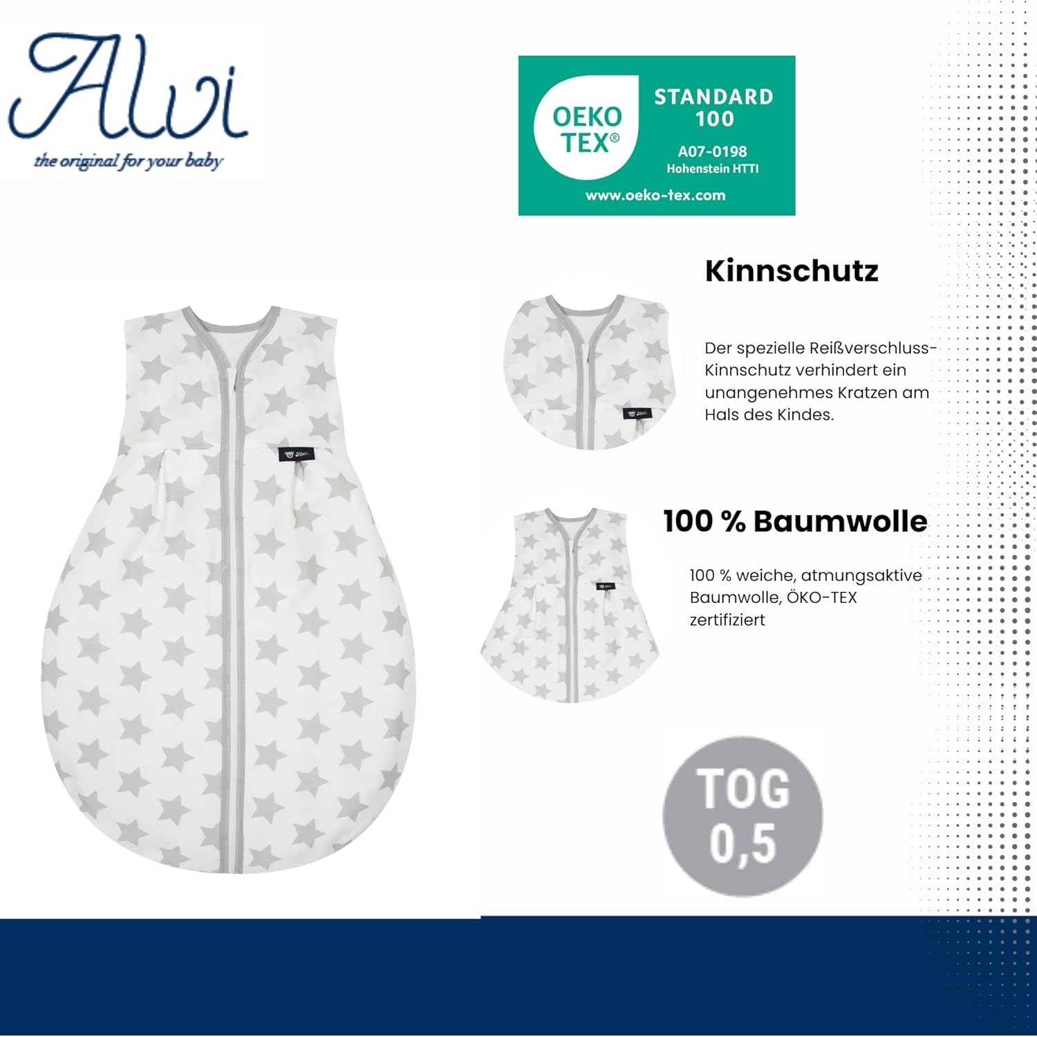 - ALVI SOMMERSCHLAFSACK - unwattierter, leichter Babyschlafsack für die warmen Tage. Das Innenmaterial des Babyschlafsacks besteht aus kuscheligem Molton und ist besonders hautsympathisch. TOG-Wert: 0,5