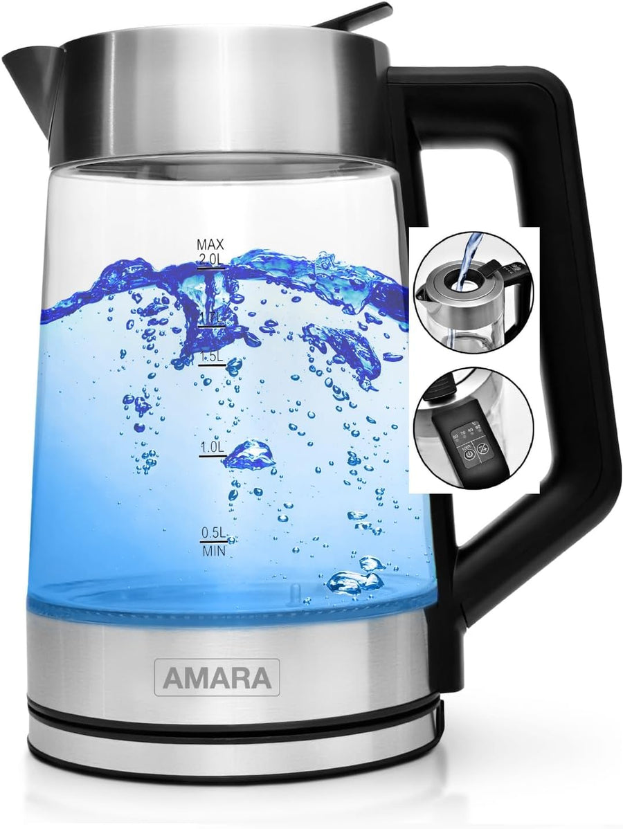 - EXTRA SCHNELLES & LEISES AUFHEIZEN - Durch das leistungsstarke 2200W Heizelement kocht der Glas-Wasserkocher das Wasser besonders schnell auf die gewünschte Temperatur auf ohne lange Wartezeiten am Morgen zu haben. Das Kochen ist im Gegensatz zu älteren Modellen deutlich leiser.