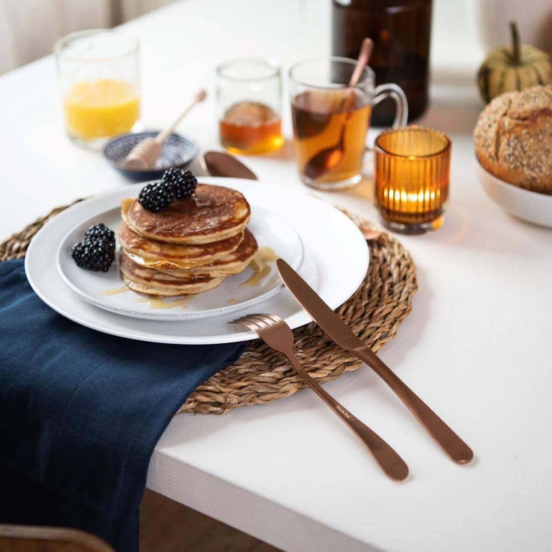 - BESTECK IN TRENDFARBE: Das edle Kupfer erhält dieses Besteckset dank der exklusiven PVD-Veredelung. Die besonderen Farben sorgen für Exklusivität – Zuhause, als Camping Besteck und im Garten.