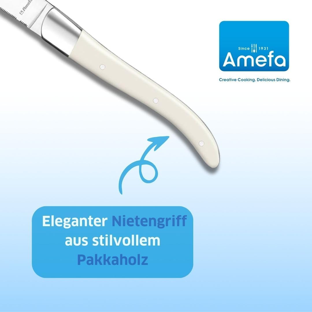 - TRADITIONELL: Dank Mikrosägeschliff gleitet die hochwertige Klinge durch das Fleisch ohne daran zu reissen. Das traditionelle Steakhouse Design sorgt für authentischen Steakgenuss in deinem Zuhause.