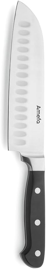 - ALLE DETAILS: Scharfe Profiklinge, klassischer Nietengriff, aus 3Cr14 Klingenstahl, Inhalt: 1 Santokumesser 7", Klingenstahl/Kunststoff. Handwäsche empfohlen.