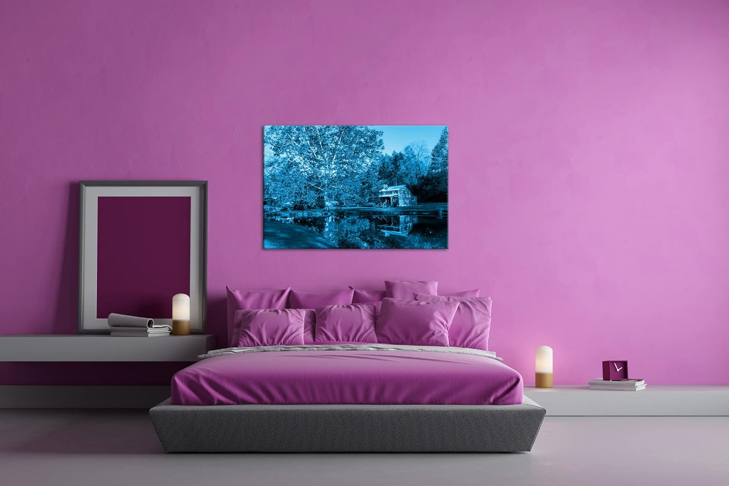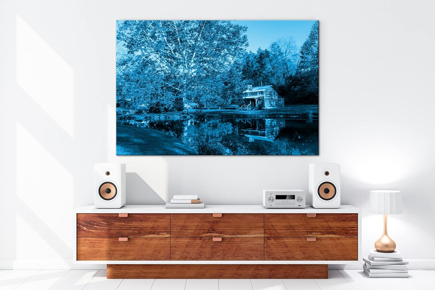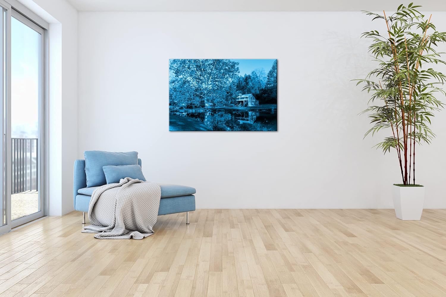deyoli amerikanisches Blockhaus in West Virginia Format 80x60 Effekt: Monocrome Blau als Leinwandbil