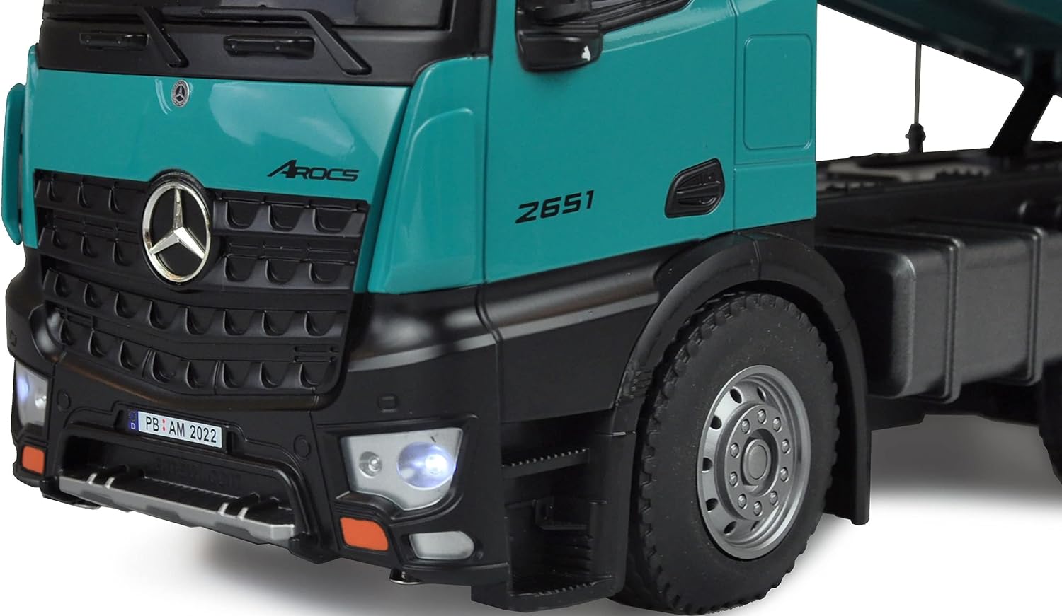 Amewi 22533 Mercedes LKW Kipper PRO Metall V2 Lizenzfahrzeug 2,4GHz RTR Petrol inkl. zusätzlichem Ak