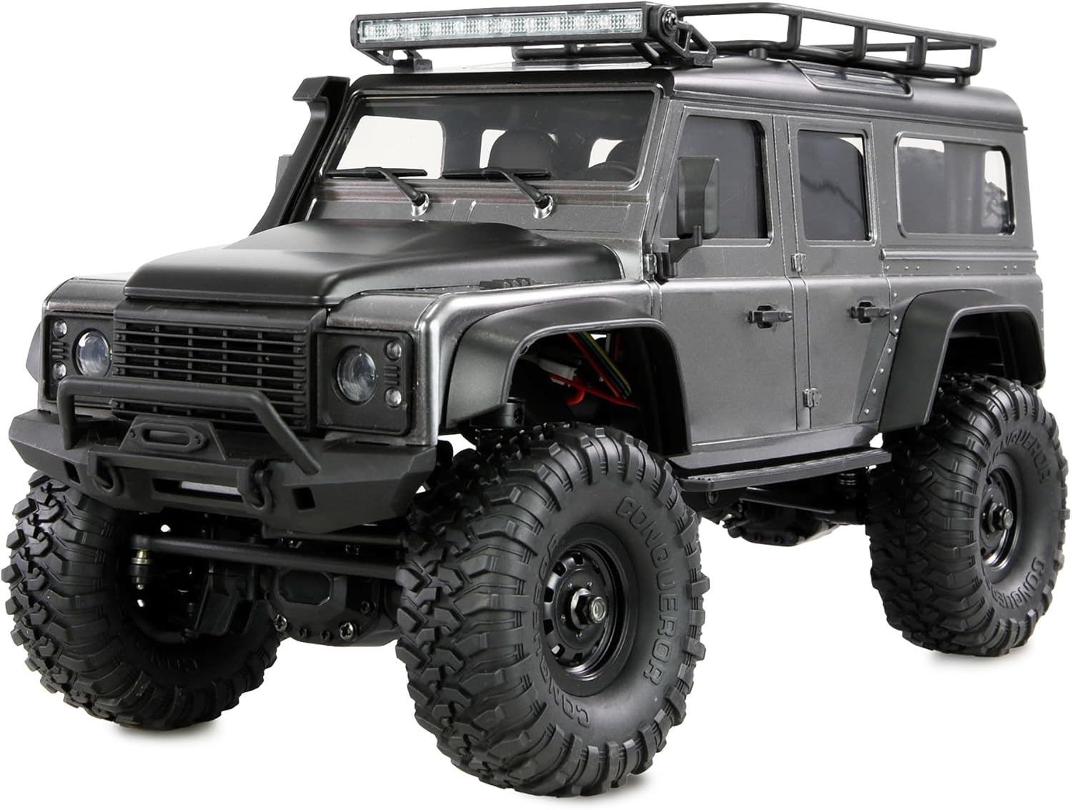 - IPX4 spritzwassergeschützt, Allradantrieb, Einzelradaufhängung, Hochpräzisionslager im gesamten Fahrzeug, Metallrahmen