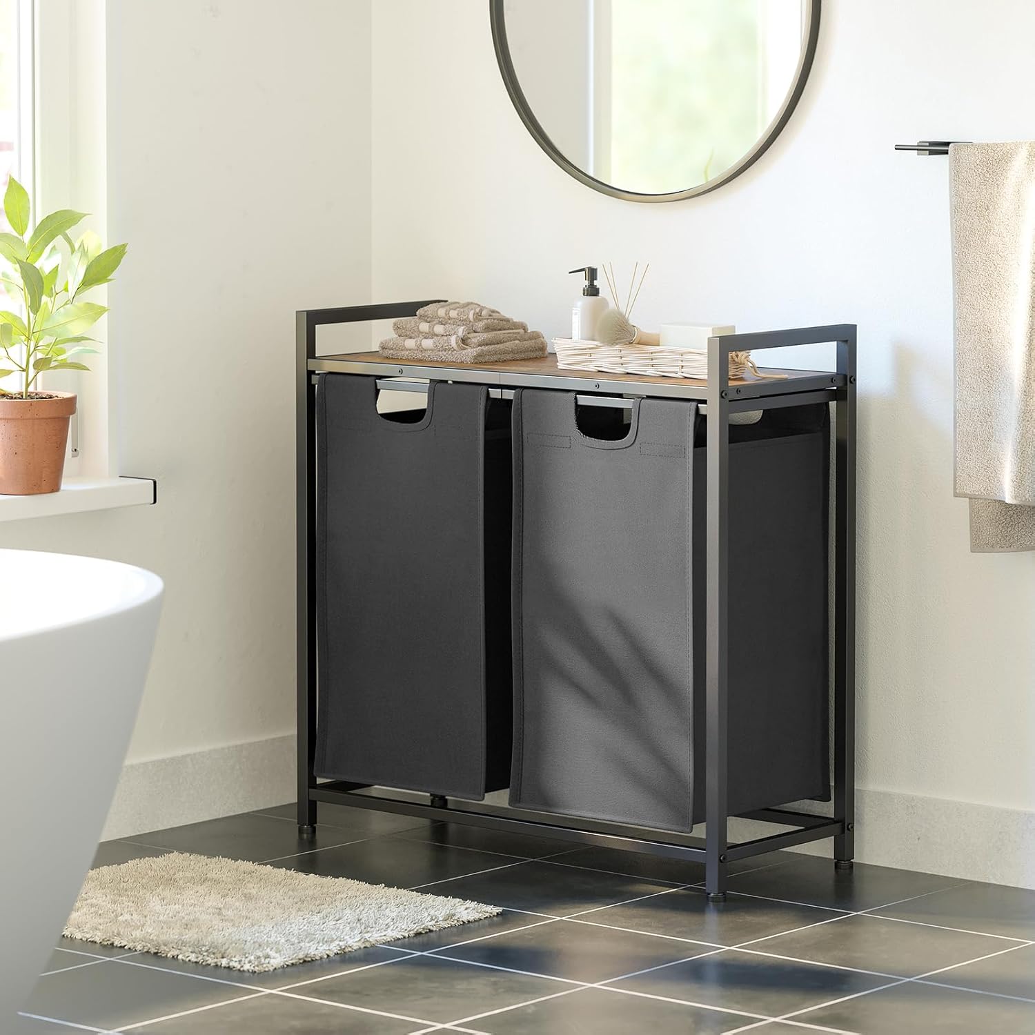 - Auszieh- und abnehmbare Beutel: Mit Schiebegleitern und Klettverschlüssen ausgestattet, lassen sich die 38 Liter Wäschesammler mit Ablage mühelos abnehmen, um schmutzige Wäsche problemlos zur Waschmaschine zu transportieren. Ein verstärkter Boden in