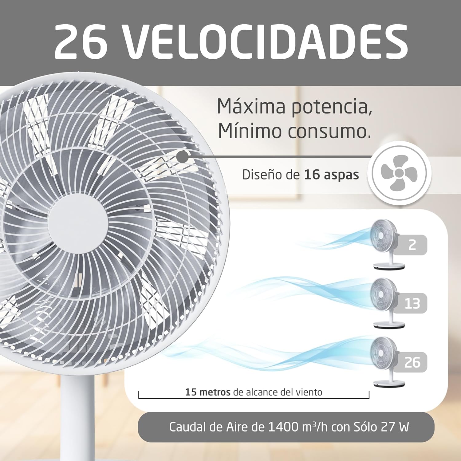• TECHNISCHE DETAILS: Der GALAIR-01 WIFI Ventilator verfügt über 16 Flügel und garantiert maximale Effizienz, da er über eine Luftstromkapazität von bis zu 1400 m³/h mit einer Reichweite von 25 m² verfügt. All dies bei einem Verbrauch von unter