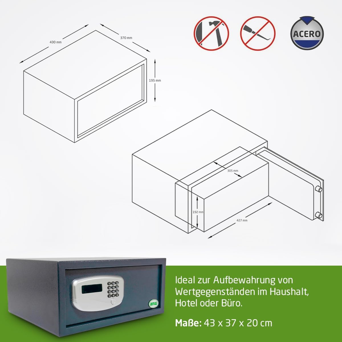 - SCHUTZ: Der Überlagersafe mit LED-Display und 3-6-stelliger Tastaturschloss für Benutzer und 6-stellige Masterfunktion ist die perfekte Lösung zum Schutz Ihrer Wertgegenstände. Mit einem motorisierten elektrischen Öffnungssystem und einer