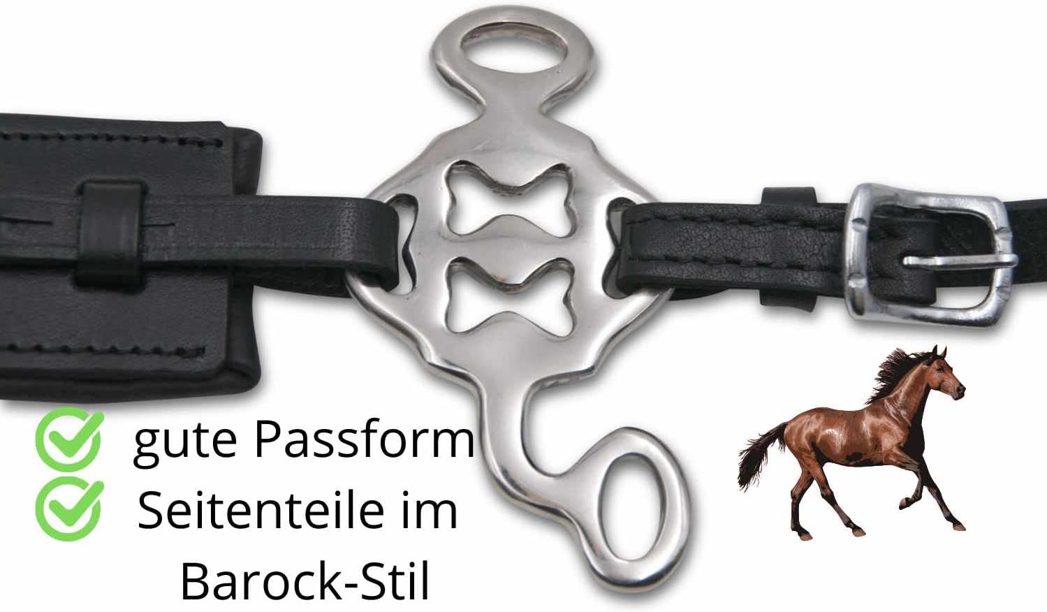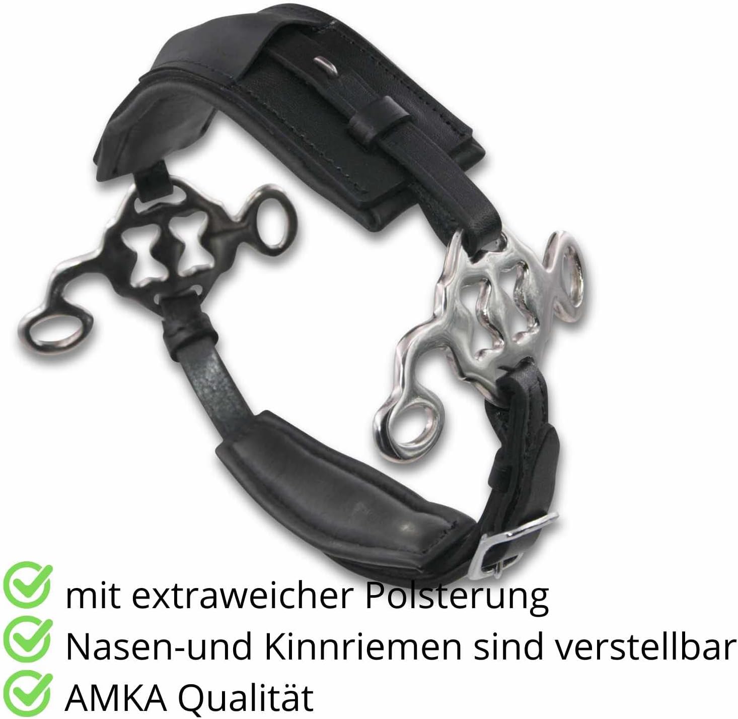 - Nasenriemen und Kinnriemen aus Leder gepolstert und verstellbar