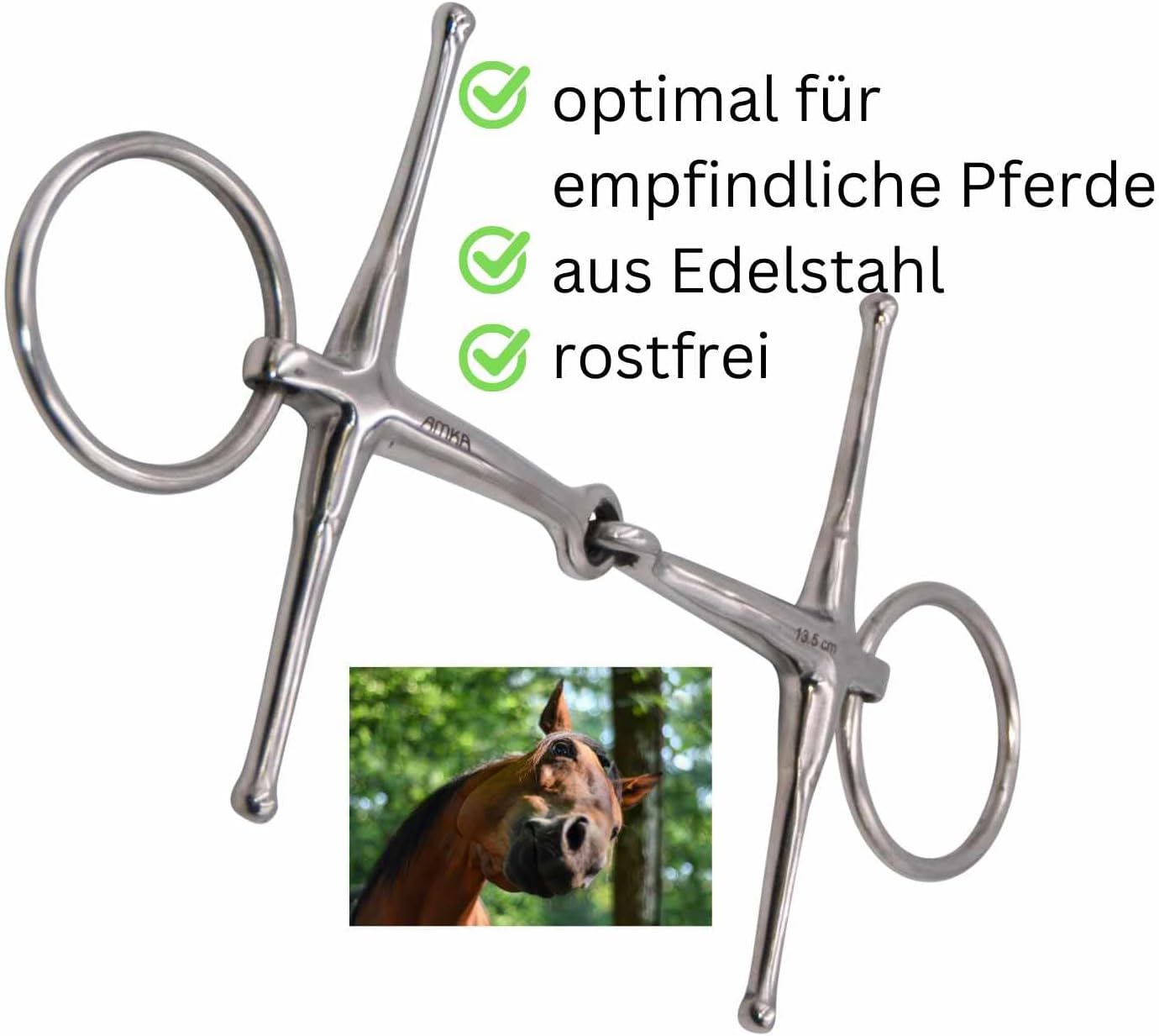 - die Knebeltrensel liegt ruhig im Maul und ist für sensible Pferde geeignet