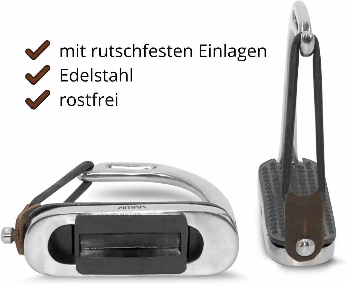 AMKA Sicherheitssteigbügel Edelstahl mit Gelenk Flexible Bügel 10 cm 12 cm 13 cm Trittfläche, 13