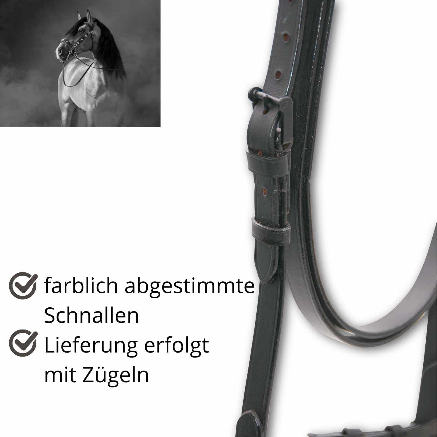 - Kopfstück, Stirnband und Nasenriemen aus glattem Leder