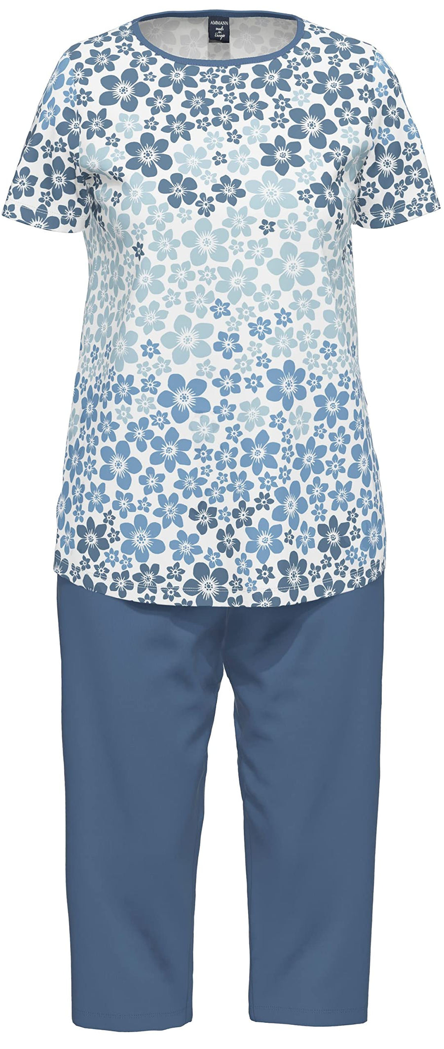 Ammann Damen Schlafanzug kurz mit Caprihose, Farbe:Federal Blue, Grösse:38