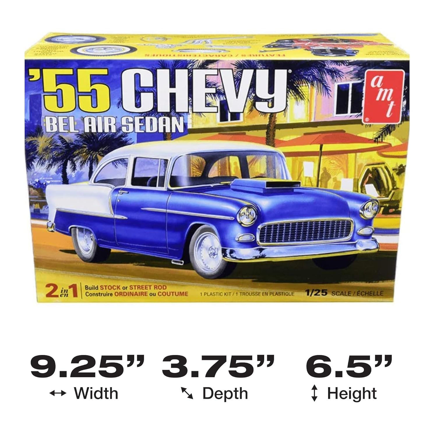 PRODUKTBESCHREIBUNG Plastikmodellbausatz eins US-amerikanischen PKWs aus den 1950er Jahren. WARNHINWEISE Modellspielwaren, nicht für Kinder unter 14 Jahren geeignet!