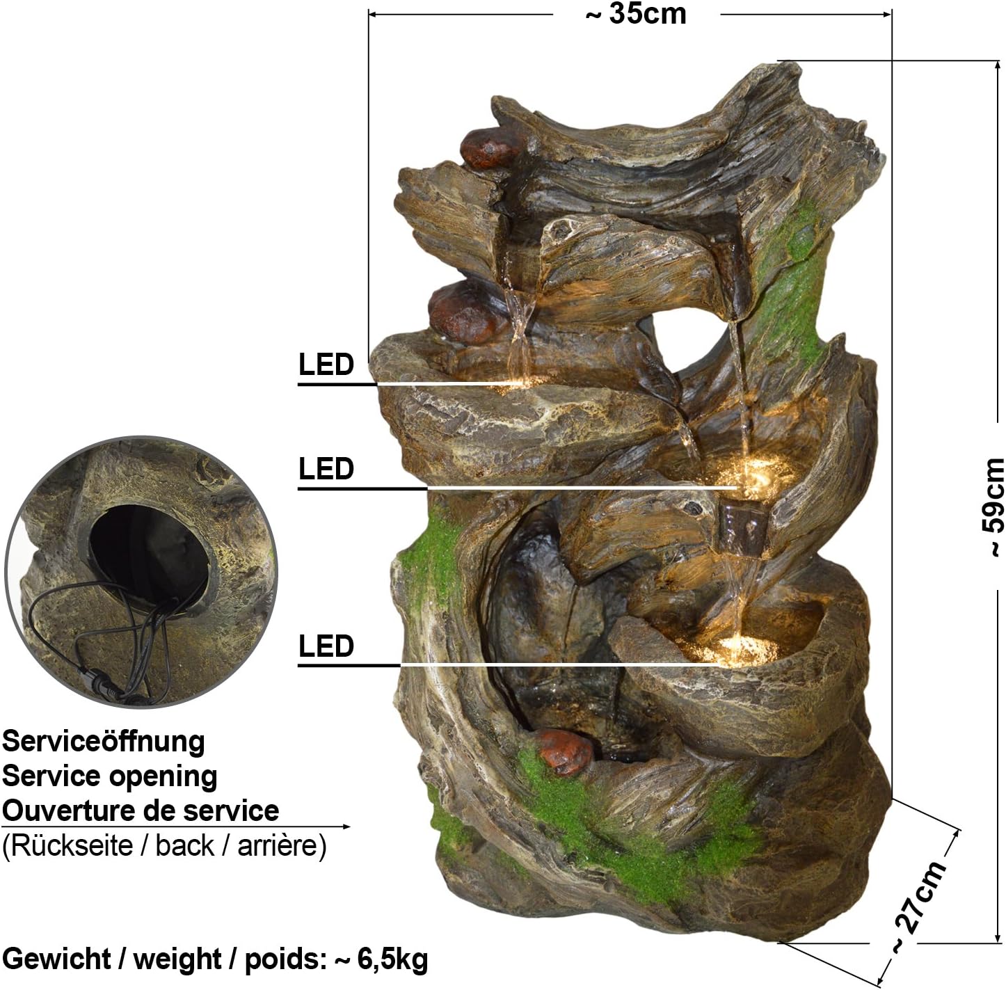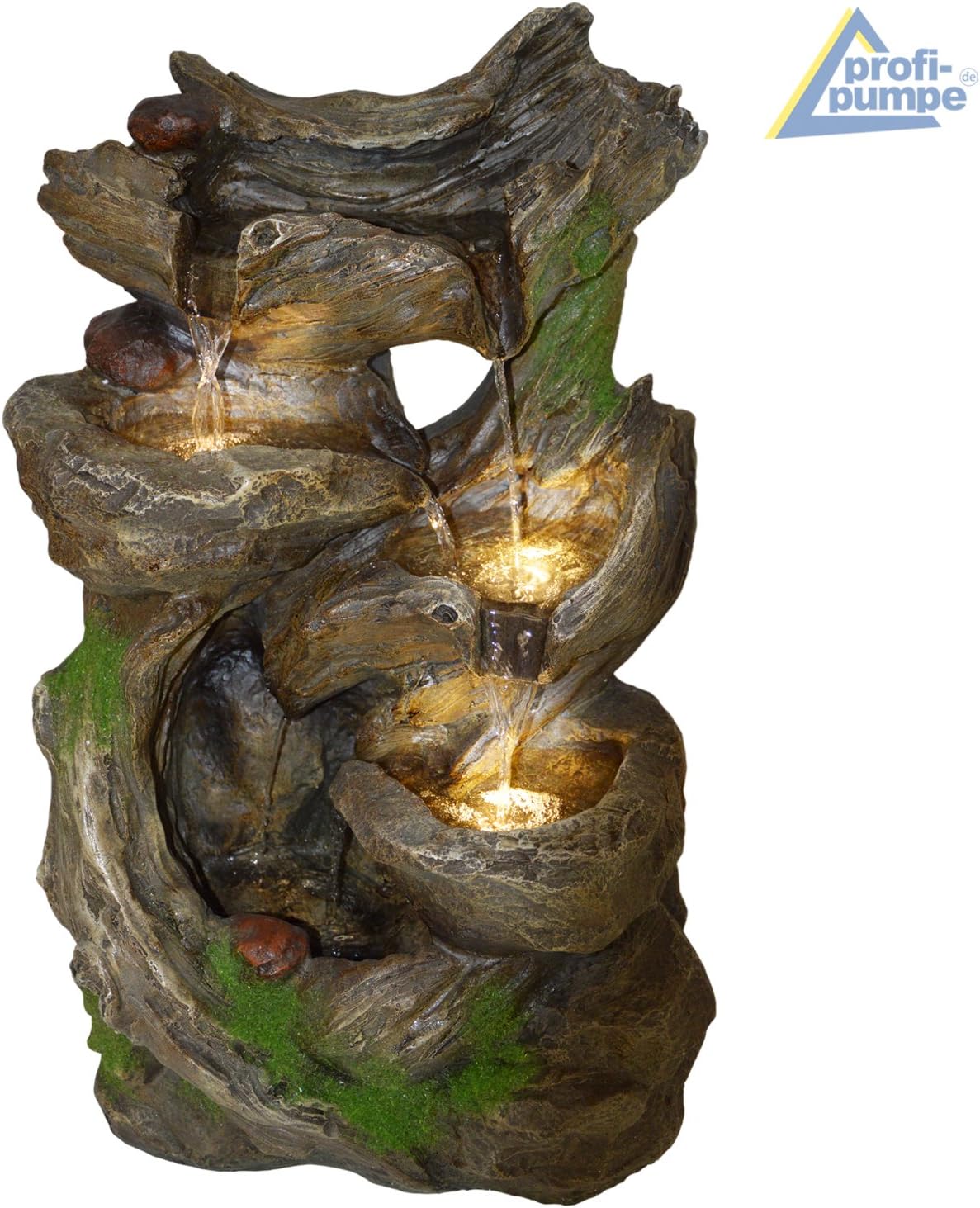 • Steckfertiger, sofort einsatzbereiter Gartenbrunnen / Indoor- und Outdoor-Brunnen / wirkt belebend auf die Sinne / verbessert die Luftqualität / naturgetreue Steinnachbildung mit wirklichkeitsgetreuer Moosdekoration