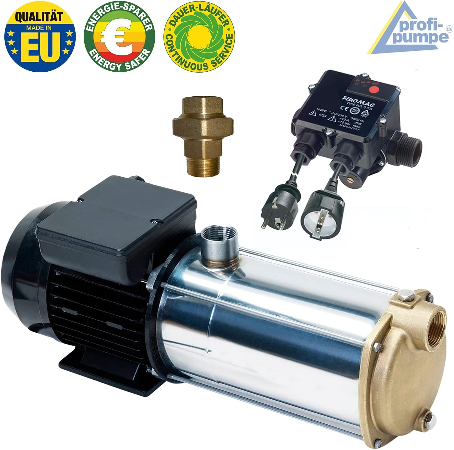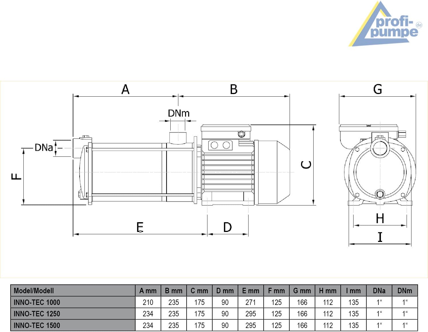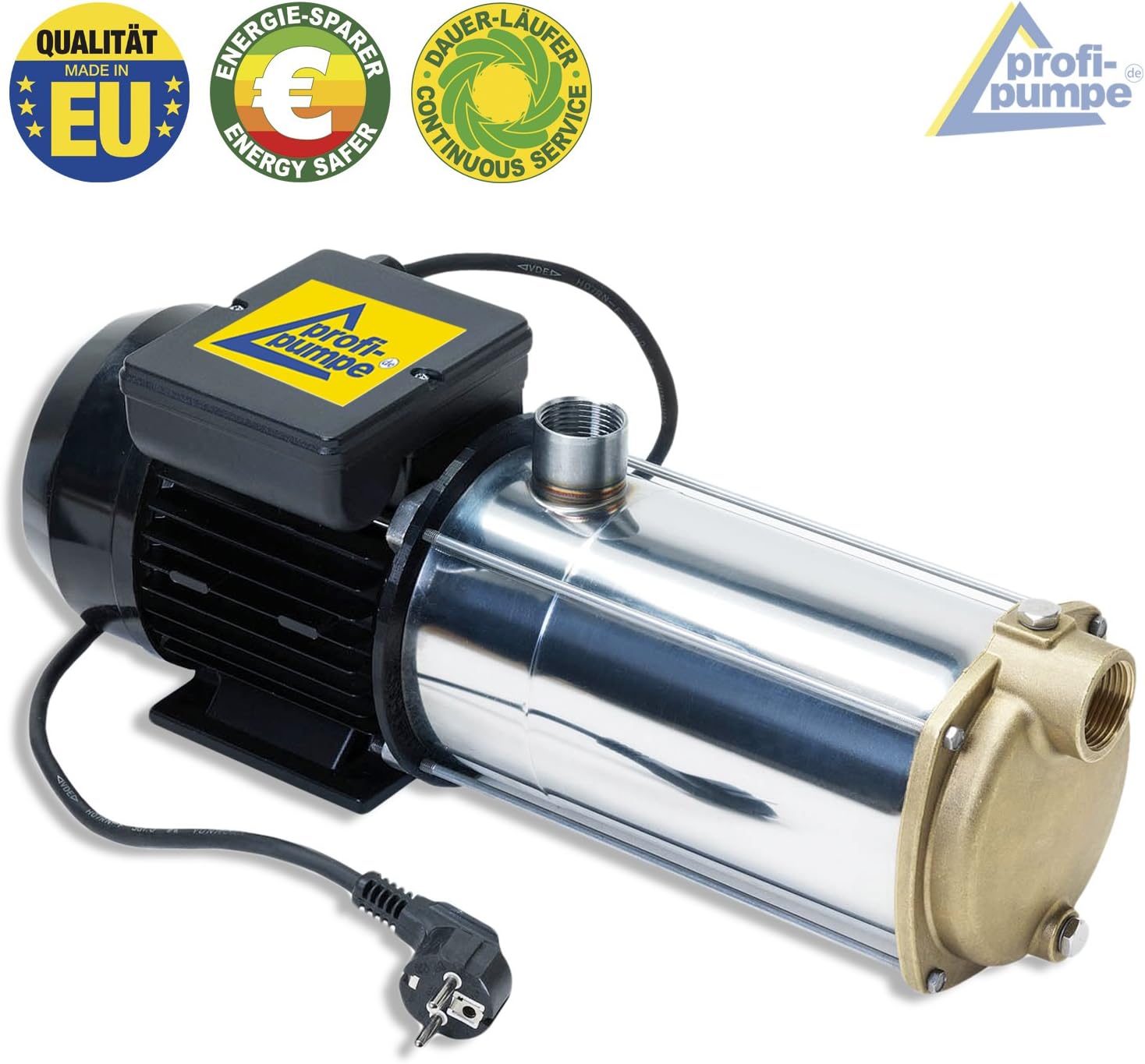 - Solide, leistungsstarke, zuverlässige,mehrstufige Kreiselpumpe 4,3 bar und Fördermenge von 5000 l/h bei einer Leistungsaufnahme von 1050 W