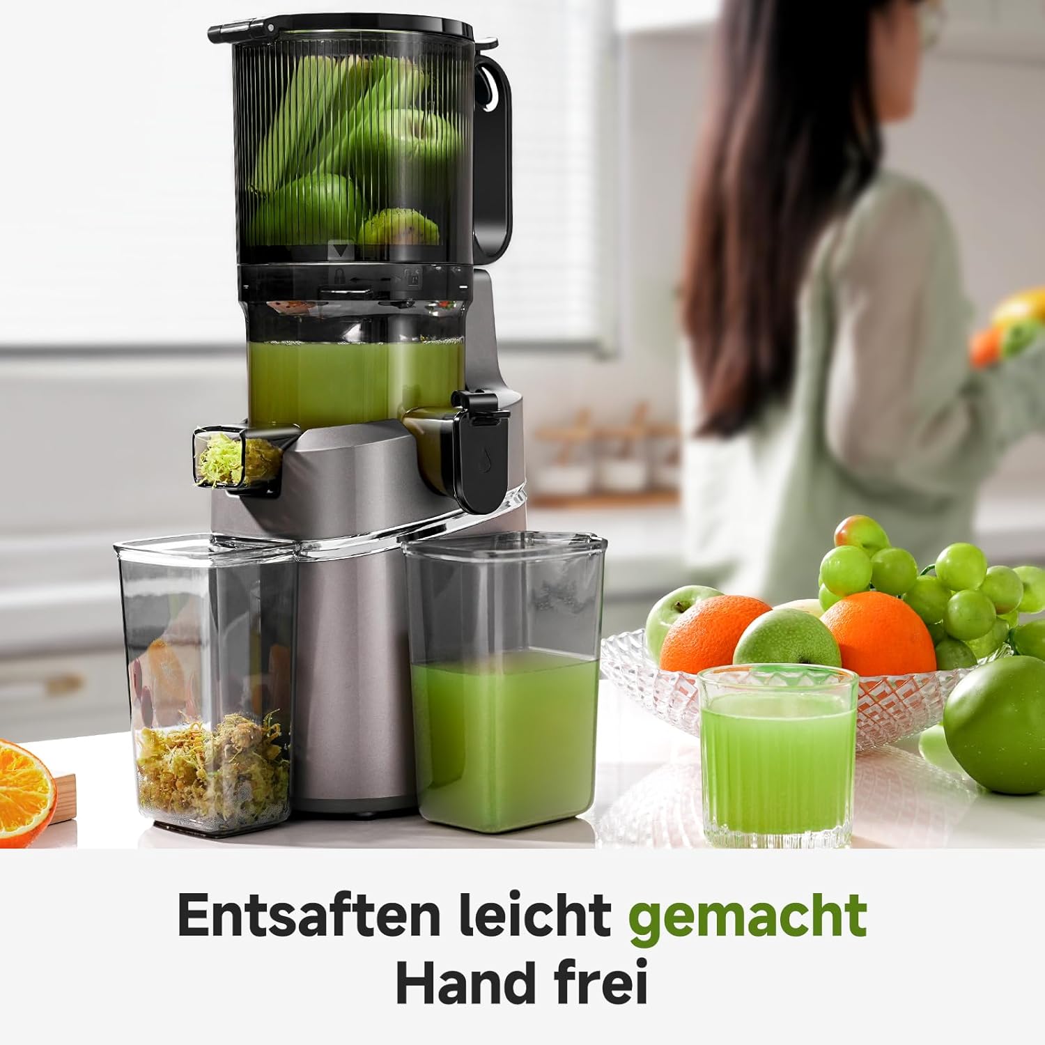- ✅【AUTOMATISCHER ENTSAFTER】- Die neue Generation des AMZCHEF Entsafters unterscheidet sich von traditionellen Entsafter. Die 135mm grosse Öffnung und das Fassungsvermögen von 1,8 Litern befreien Sie von der lästigen Aufgabe, den Entsafter slow