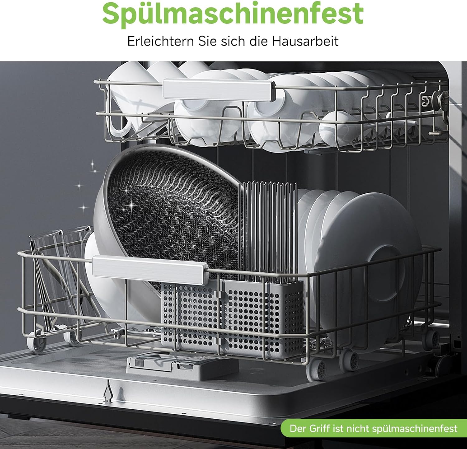 - 【HOCHWERTIGE MATERIALIEN】Diese Bratpfanne mit einem Durchmesser von 24 cm ist aus lebensmittelechtem Edelstahl 304 gefertigt. Hochbelastbarer, stossfester, gekapselter Aluminiumboden für schnelle und gleichmässige Erhitzung.