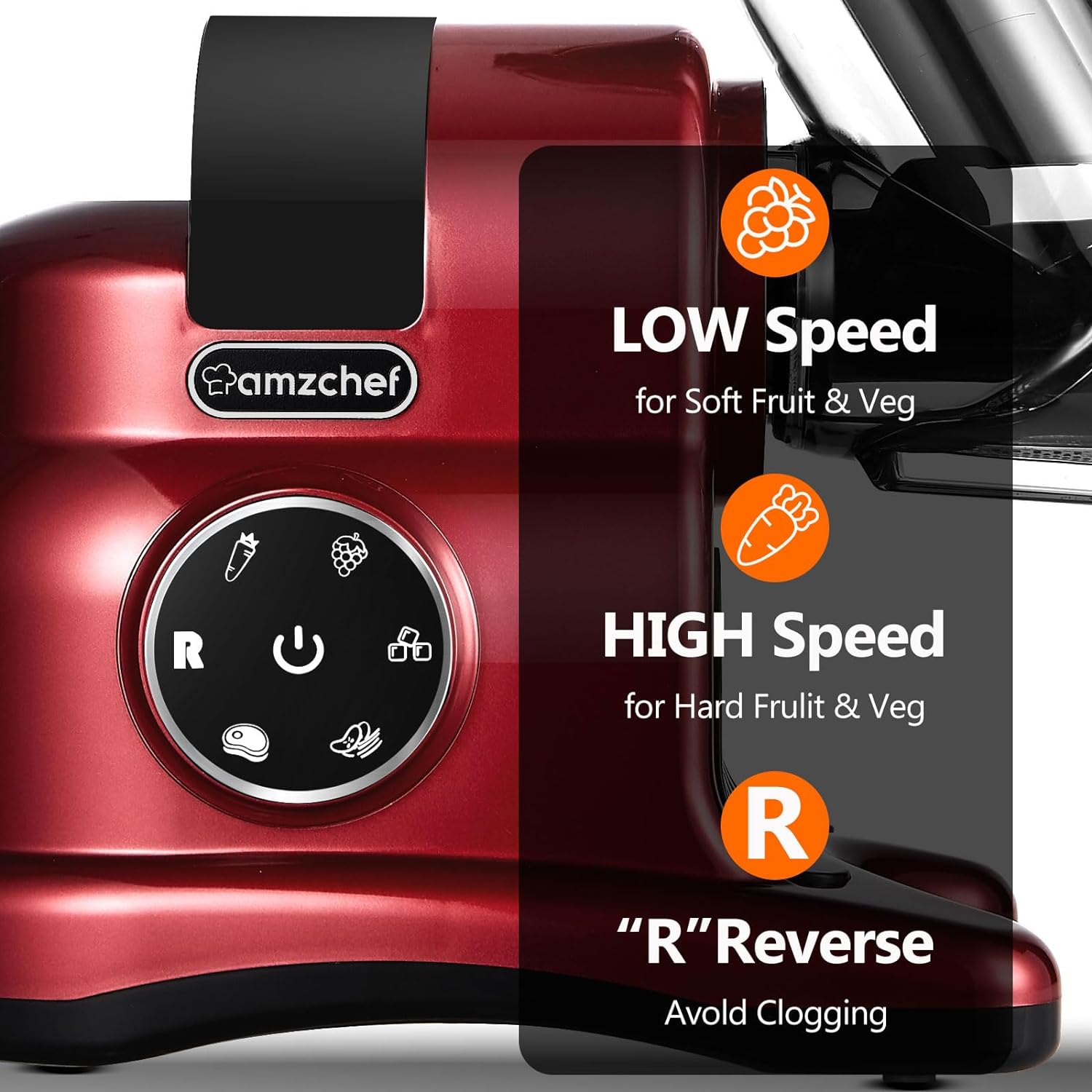 - ✔[2-Geschwindigkeiten & Umkehrmodus] - Mit 2 Geschwindigkeitsmodi und Umkehrfunktion ausgestattet, können Sie den weichen/harten Modus je nach Gemüse und Obst bei Ihrem AMZCHEF Entsafter einstellen. ★"SOFT MODE(50-60RPM)": Orange, citrus,