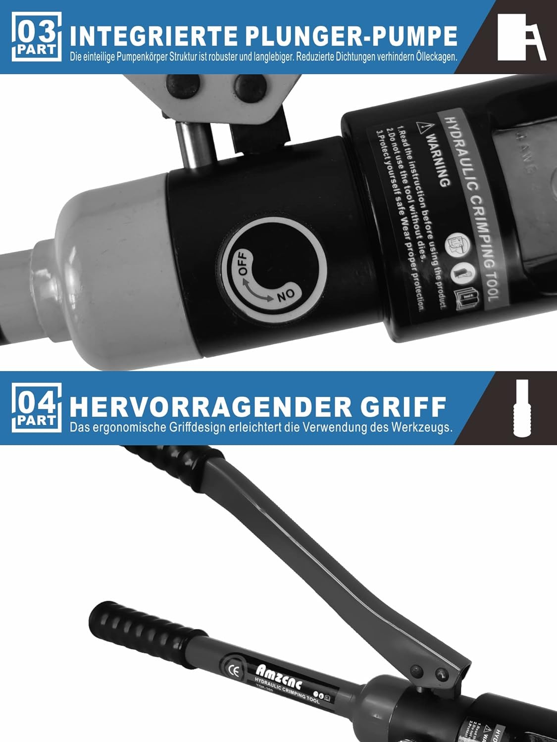 AMZCNC 16 Tonnen Hydraulische Presszange Crimpzange 8-300 mm² Zange Kabelschuhzange with 13 Pairs of