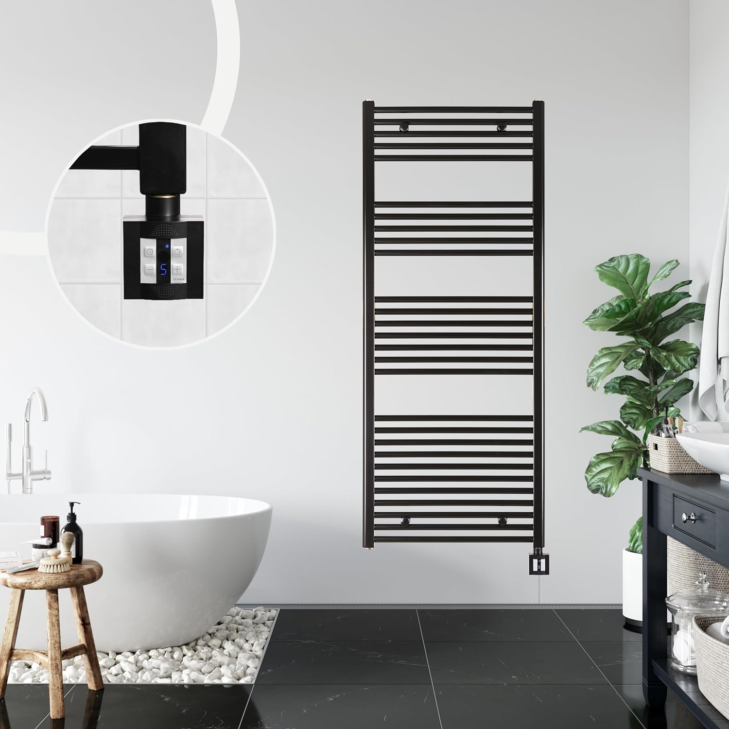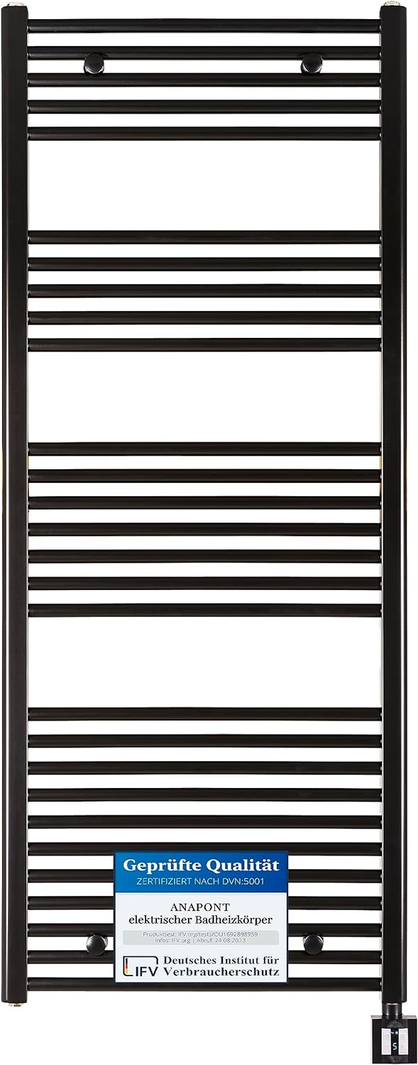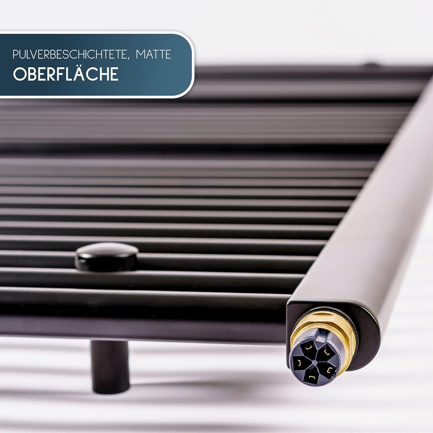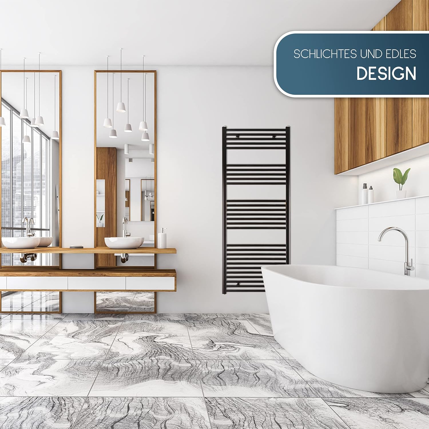 - ✅ PRODUKTINFORMATIONEN: Der matt schwarze Badheizkörper ist 1475 x 600 mm gross, hat eine maximale Leistung von 800 Watt und reicht für einen ca. 6,5 m² Raum aus. Er wird fertig montiert und befüllt geliefert.