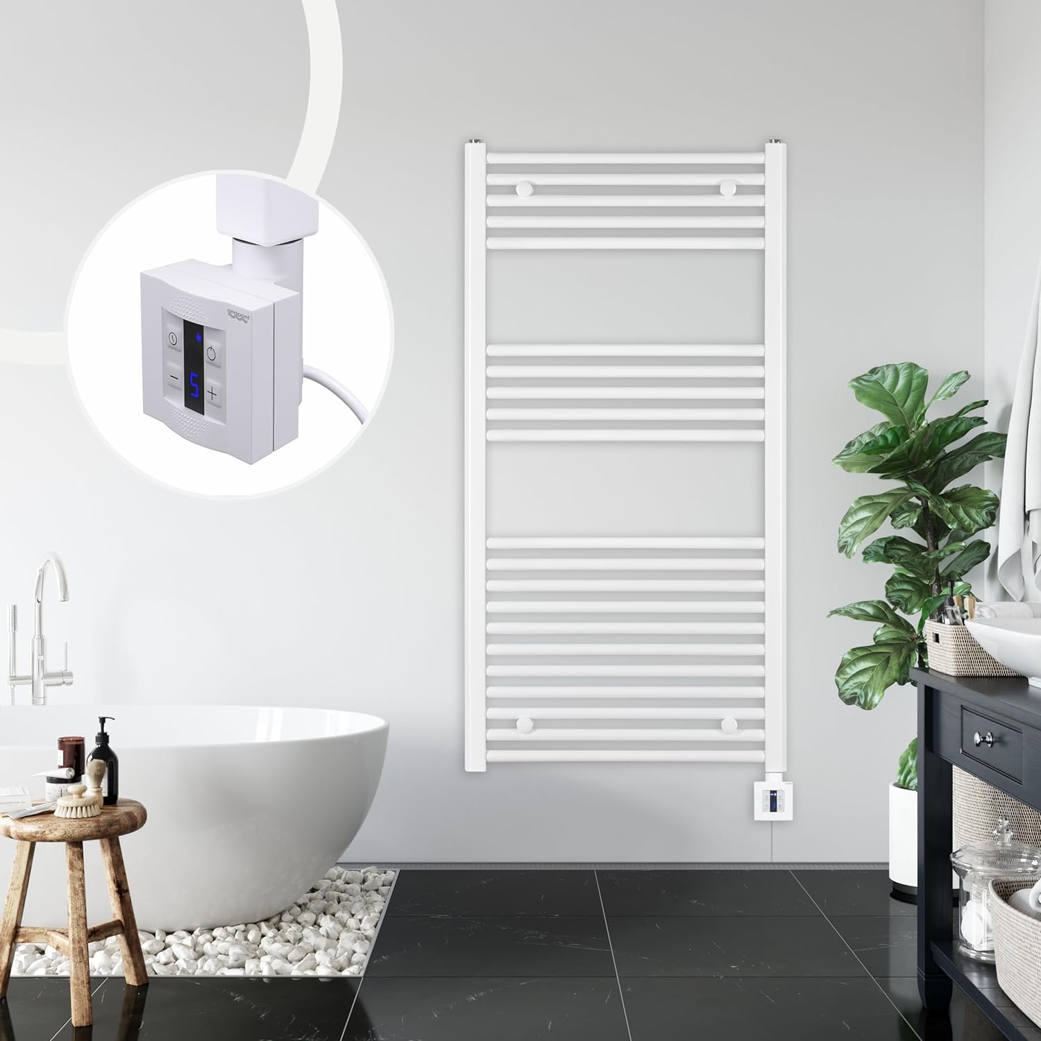 - ✅ PRODUKTINFORMATIONEN: Der Badheizkörper ist 1175 x 500 mm gross mit max. 600 Watt, ist weiss/gerade und reicht für einen ca. 5 m² Raum aus. Er wird fertig montiert und befüllt geliefert.