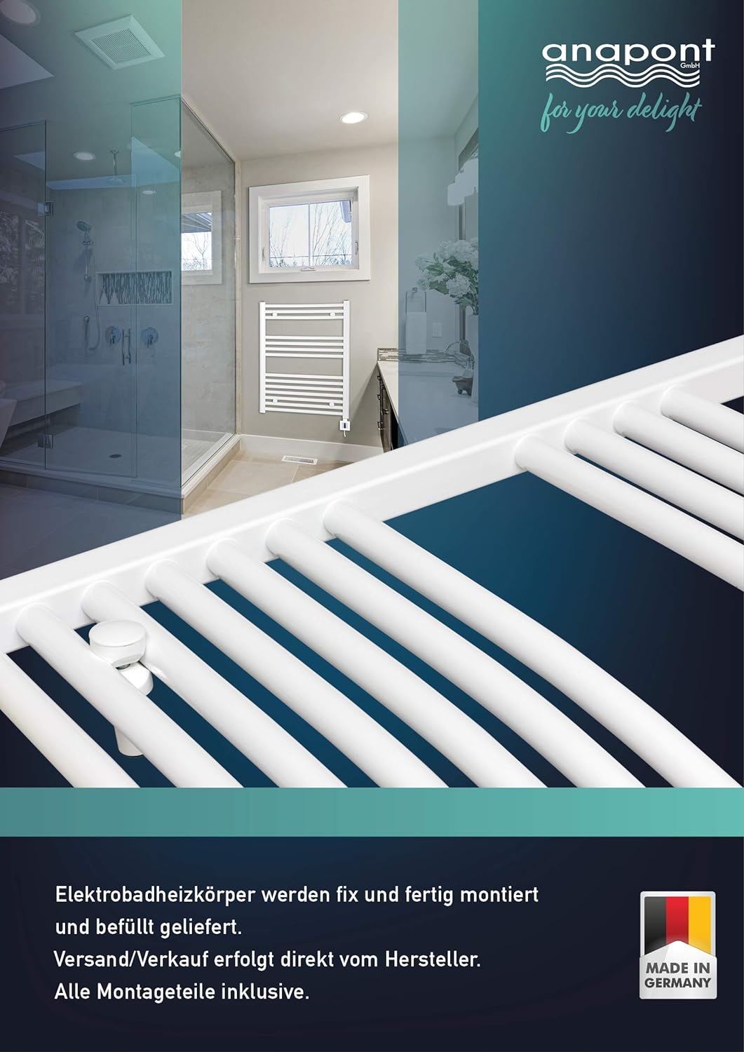 - ✅ PRODUKTINFORMATIONEN: Der Badheizkörper ist1175 x 750 mm gross mit max. 1000 Watt, ist weiss/gebogen und reicht für einen ca. 8 m² Raum aus. Er wird fertig montiert und befüllt geliefert.