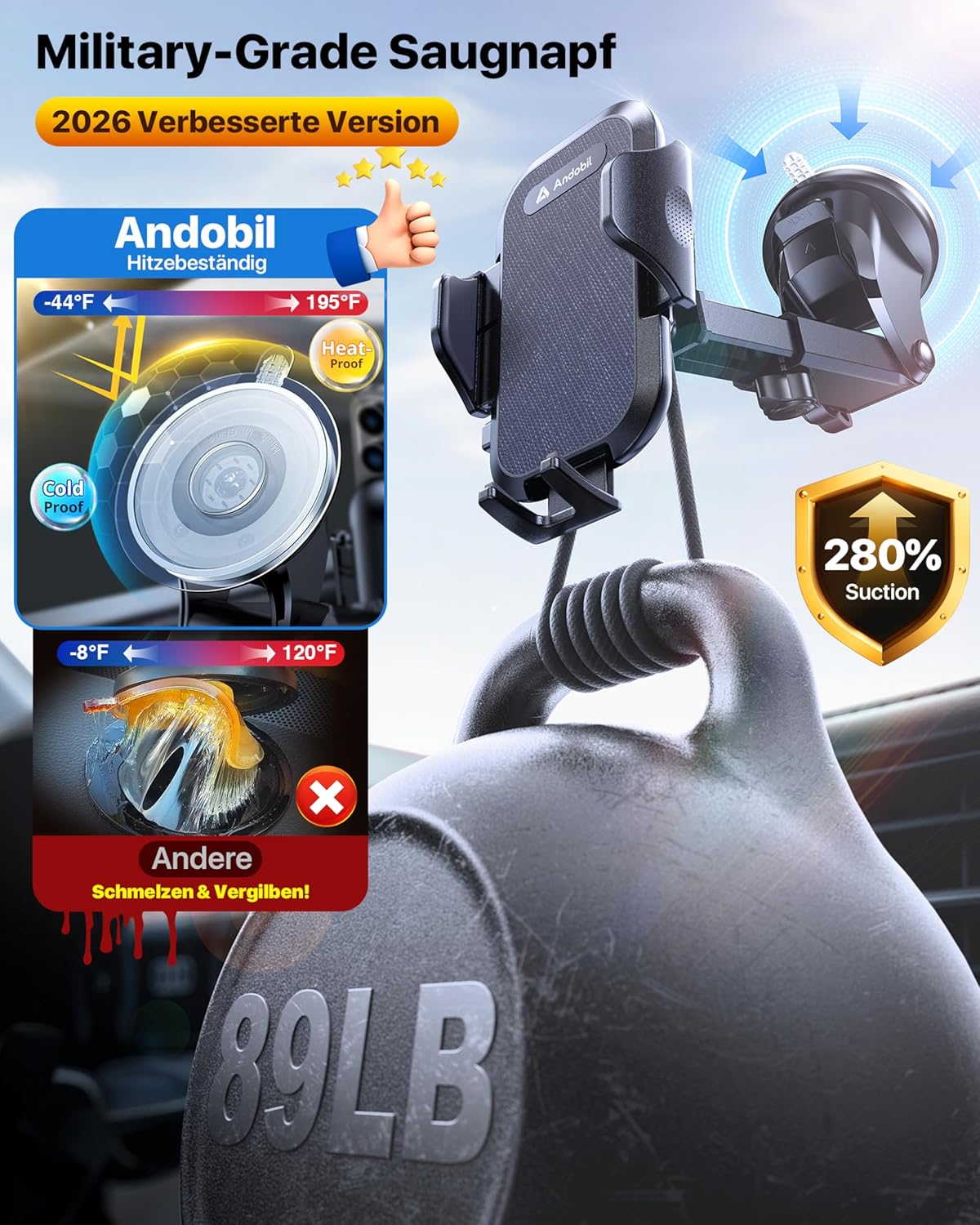 - WIR SIND IMMER HIER HÖREN SIE AUF IHR FEEDBACK: Vielen Dank an die weltweiten Verbraucher für ihr Feedback zu unseren Produkten. Wir haben die Materialien und die Struktur der Halterung Saugnapf aktualisiert! Die andobil neueste multifunktionale Halter