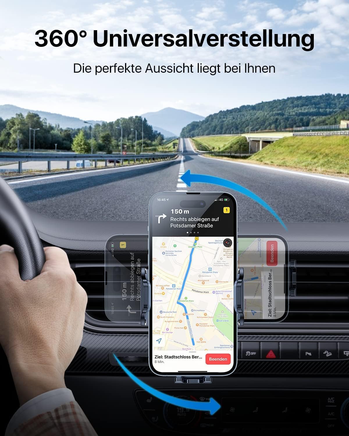 • 360 Grad DREHBAR: Dazu passt die Halterung zu meisten dicken/dünnen Lüftungsgitter. Der Kugelkopf ist um 360 Grad frei drehbar, die Navigation kann horizontal und vertikal verwendet werden. Man kann den besten Blickwinkel einstellen und sich mehr auf