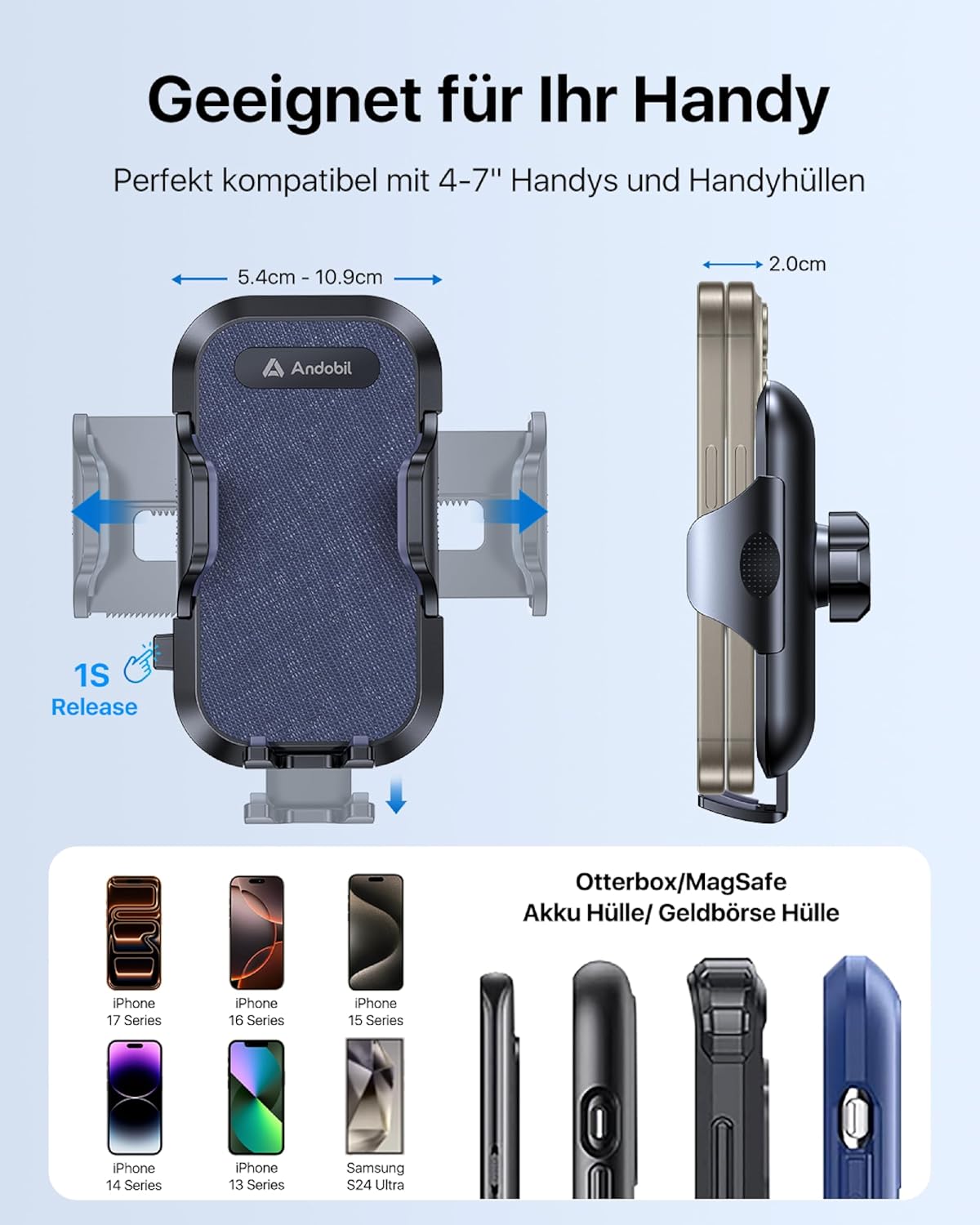 - UNIVERSALE KOMPATIBILITÄT: Geeignet für Handys zwischen 4-7 Zoll, Kompatibel mit wie iPhone 17/ iPhone 16/ 15/ 14/ 13/ 12/ 11Pro Max/ X/ iPhone 8, Samsung Galaxy S24/S24/ S23/ S22 /S21 /S20 Huawei /One Plus / Xiaomi Usw. Um das Kundenerlebnis zu