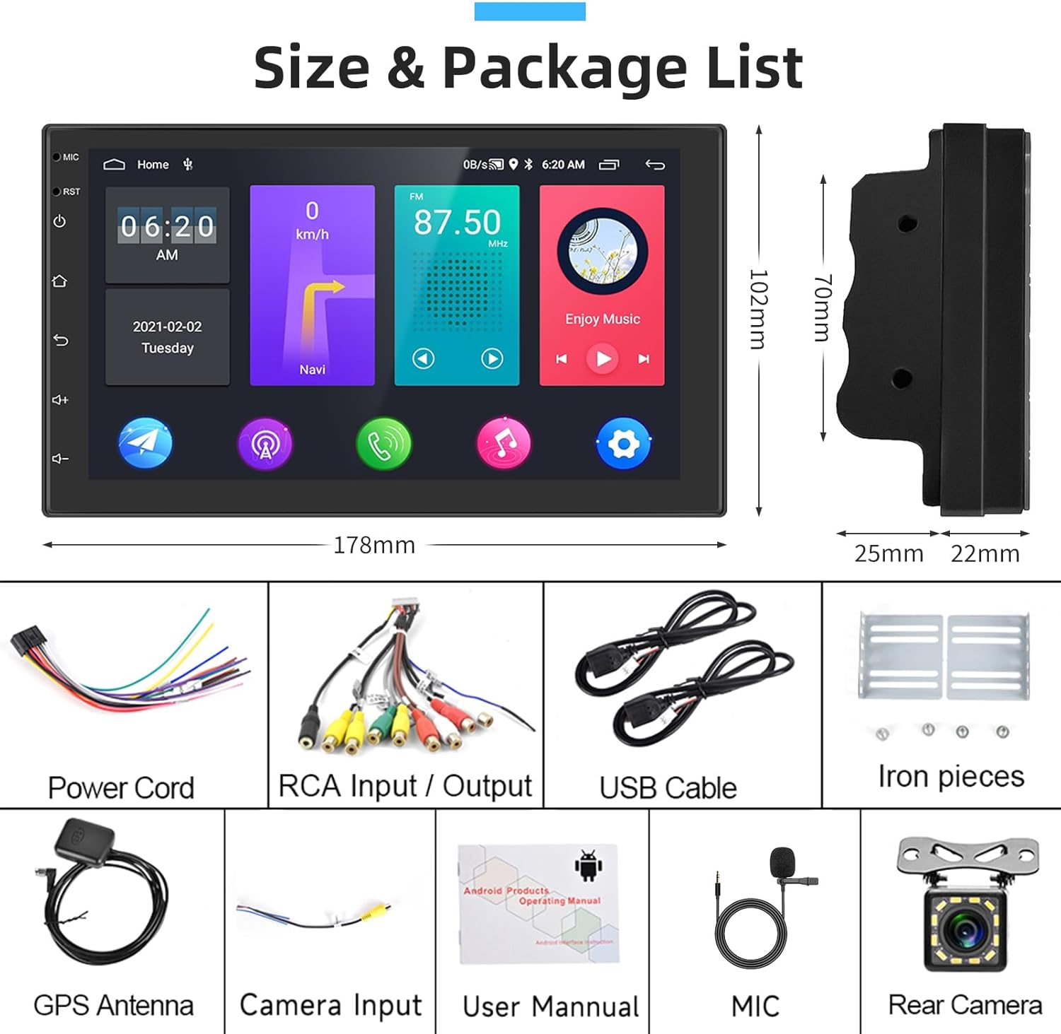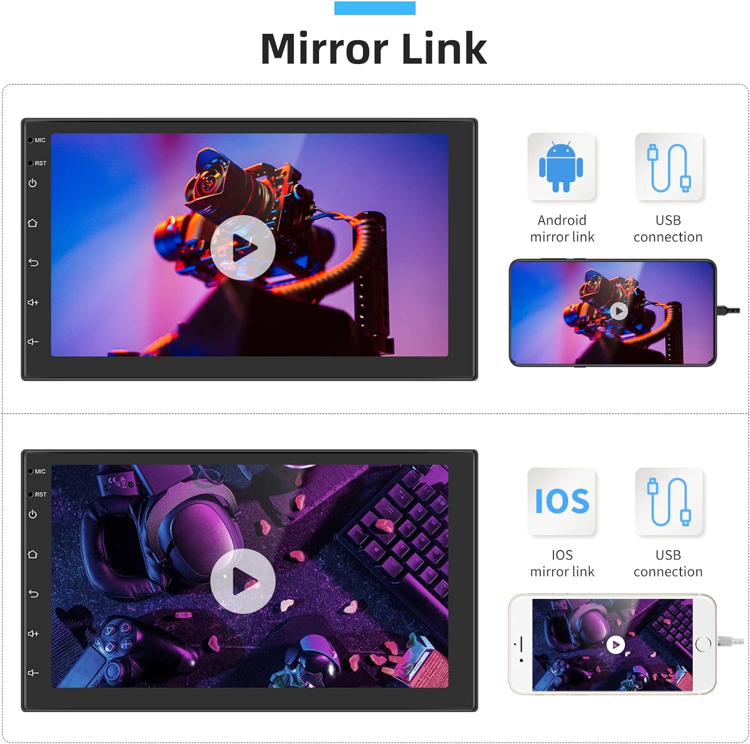 - 【Verbindung und Steuerung】 Das car radio unterstützt USB/Bluetooth/WiFi/Mirror Link/Lenkradsteuerung (SWC). Verbinden Sie Bluetooth, um freihändig zu telefonieren, Musik abzuspielen, Kontakte und Wiedergabelisten zu speichern. Verbinden Sie WLAN,