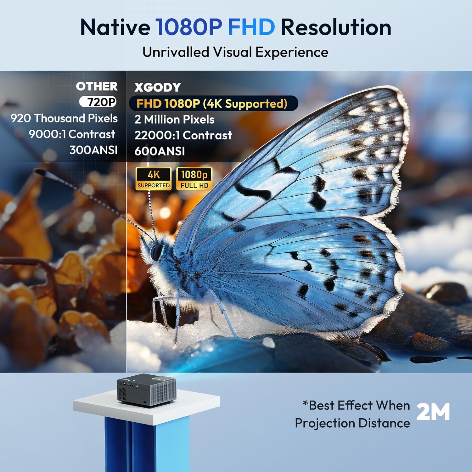 Android 11 & Electric Focus: Smart Projector Full HD XGODY Sail2 500ANSI Native 1080P Bluetooth WiFi
