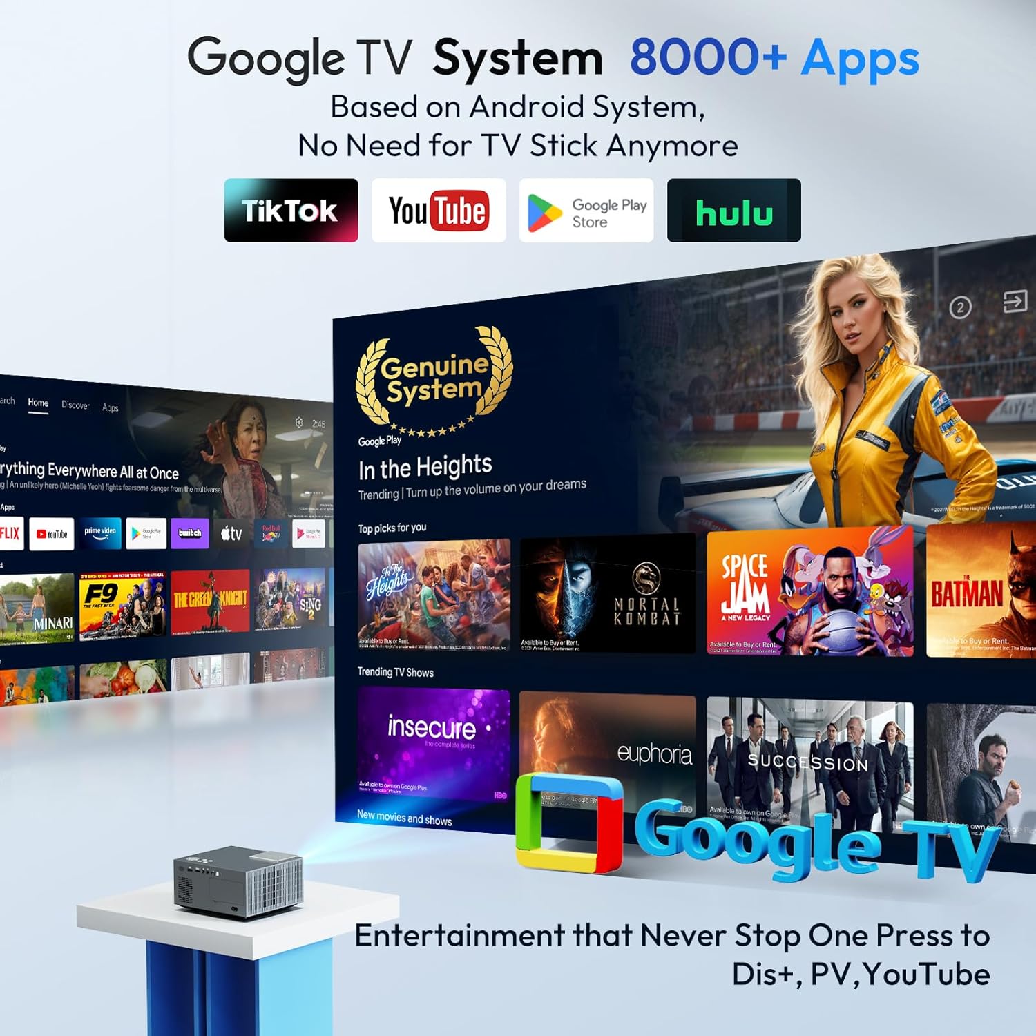 • 【Android TV 11 & Google Play Store】 Der XGODY Sail2 Smart-Projektor ist mit einem eingebetteten Android TV-Stick ausgestattet und in den Google App Store integriert. Zertifizierte Systeme können Disney, Prime Video, Netflix, YouTube und andere